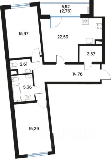 продам 2-к, Реки Смоленки набережная, 8/8634 109 970 ₽