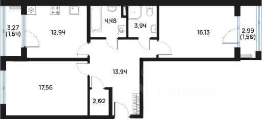 продам 2-к, Реки Смоленки набережная, 8/8630 212 576 ₽