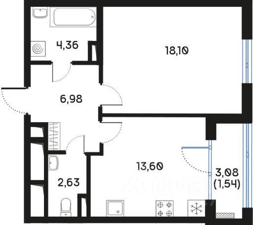 продам 1-к, Реки Смоленки набережная, 8/8620 940 529 ₽