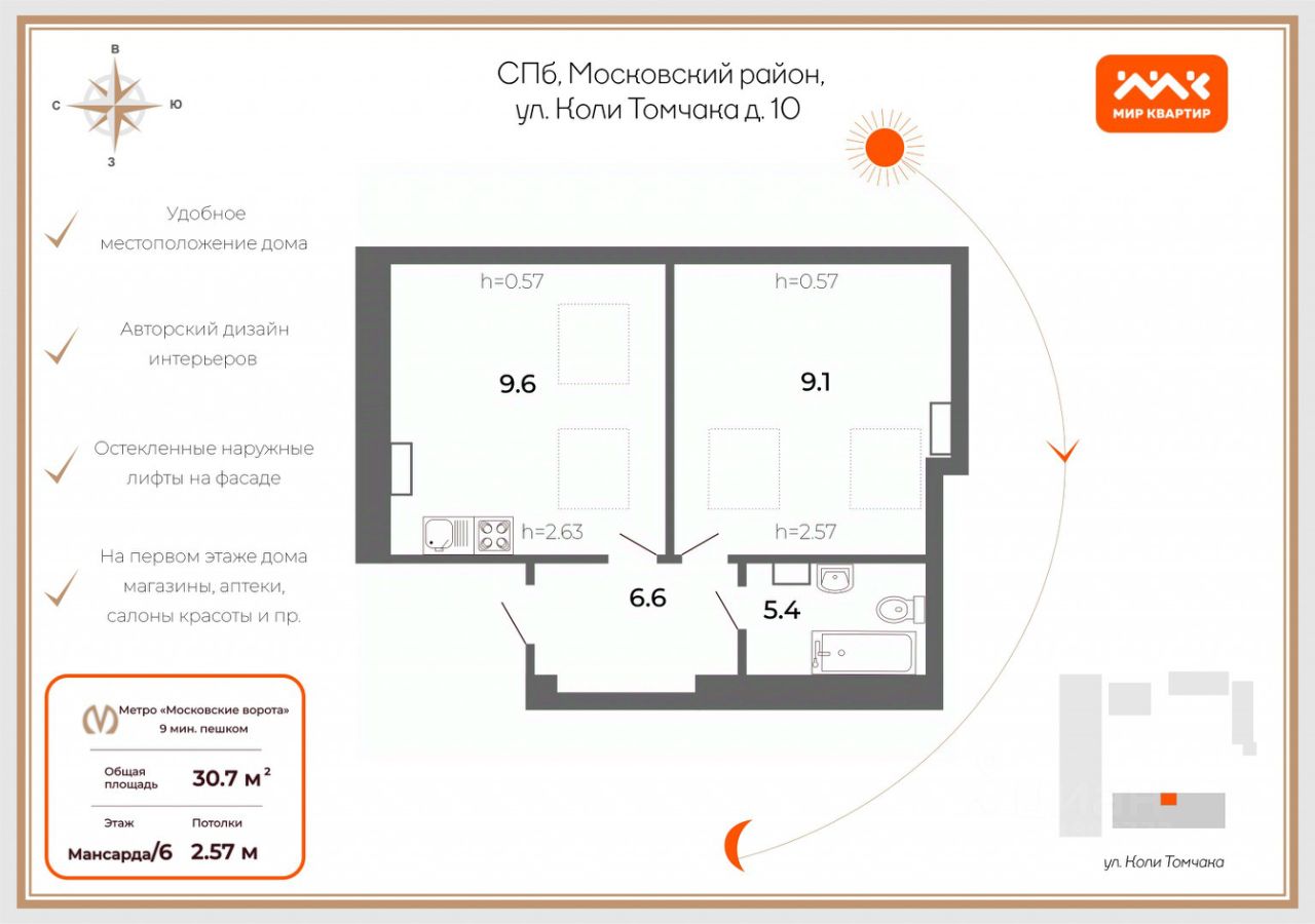 Уютная 1ккв с практичной и рациональной планировкой, расположенная на 6/6 мансардном этаже, в клубном доме ''ПРОВИДАНСЪ''.