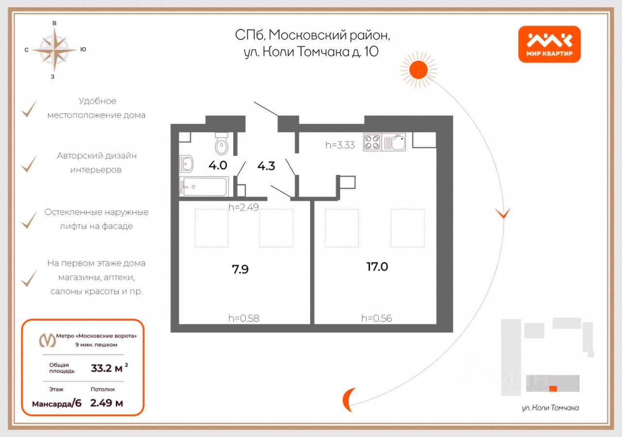 продам 1-к, Коли Томчака, 1011 888 000 ₽
