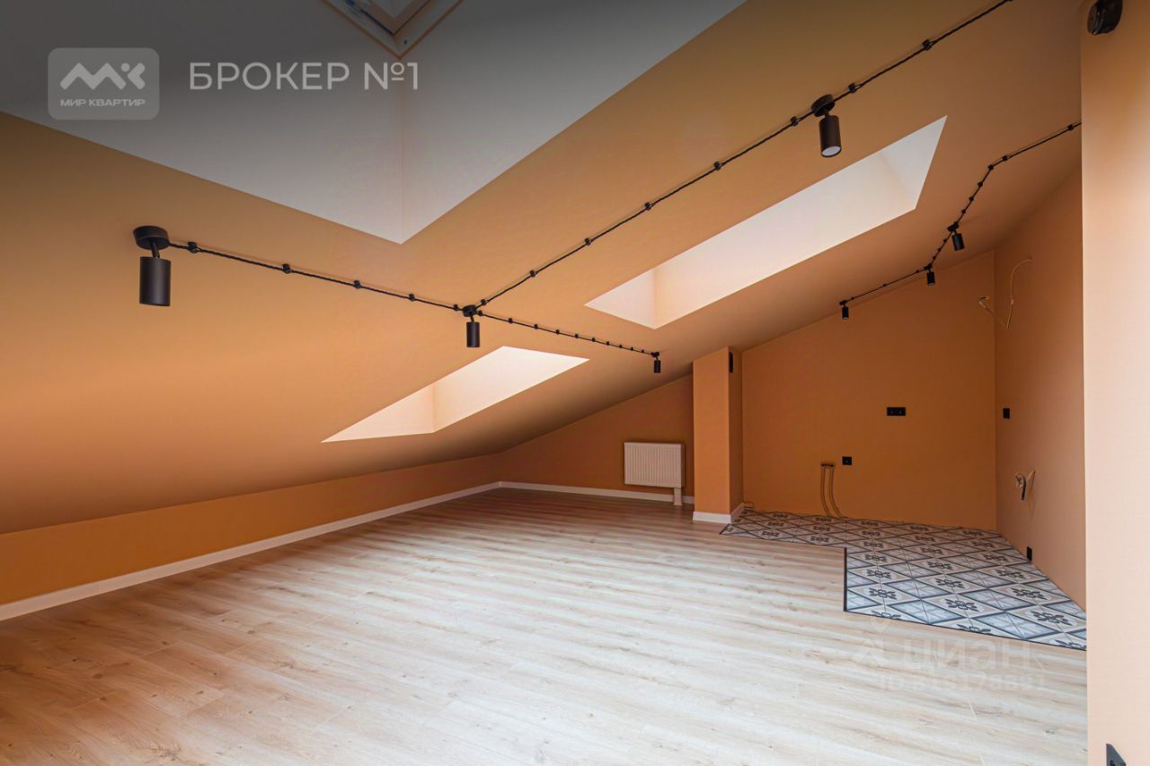 Большие мансардные окна , высокие потолки в коньке здания, просторный с/у и вместительные места хранения - это все есть в нашей уютной мансарде.