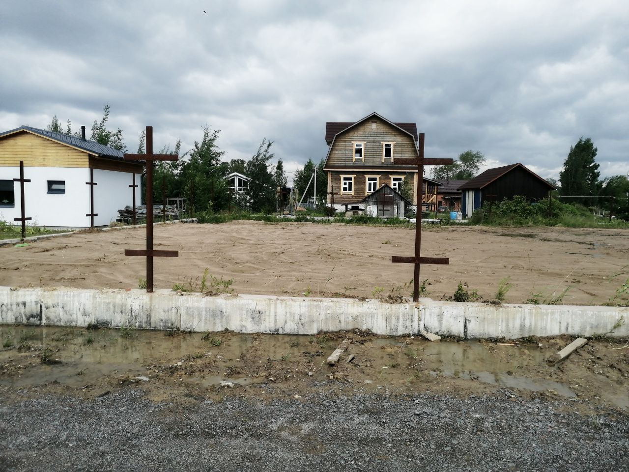1-02, Продается участок в г. Ломоносов, ул.Заварина, уч.16 (юго-восточное пересечение ул.Авроры и ул.Заварина). Участок ровный, сухой 12 соток (ИЖС) в черте города (5 минут до КАД). Все коммуникации: газ, вода, электричество. На участке сделана выторфовка в размере 1200 м3 , произведена замена непригодного грунта, завезено 1500 м3 нового грунта. По периметру участка сделан ленточный фундамент под забор с кирпичными столбами. Фундамент выполнен из высокопрочного бетона Б 25, двойной армокаркас из 16 арматуры, закреплены в армокаркас и замоноличены закладные детали из 75 уголка под столбы из кирпича или природного камня. Участок полностью подготовлен под застройку частного жилого дома!