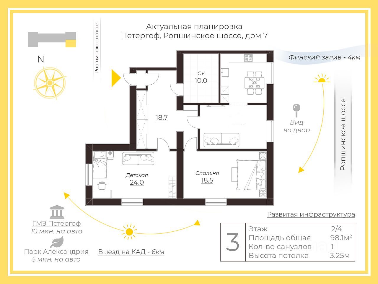 Квартира: Две большие спальни (24 и 18,5 кв.м.) — простор для всей семьи. Кухня-гостиная 26,9 кв.м. — идеальное место для уютных вечеров и семейных праздников. Высокие потолки 3,25 м придают ощущение свободы и воздуха. Продуманная прихожая и просторный санузел — удобно и практично. В квартире выполнен качественный ремонт, встроена вся необходимая мебель и техника. Чисто, красиво, можно сразу заезжать и жить. Толстые стены обеспечивают отличную шумоизоляцию — тишина и покой вам гарантированы. Такого сочетания уюта, простора и удобства вы не найдёте поблизости. Условия сделки: Квартира без обременений, полная стоимость в договоре. Встречная покупка — ищем квартиру поменьше в Приморском районе Санкт-Петербурга.