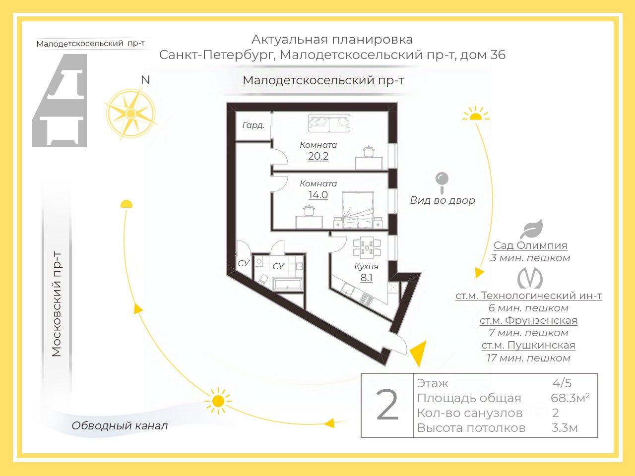 Образование: Школы, сады в шаговой доступности. Удобство для семей с детьми. ВУЗы, театры (ТЮЗ, Молодёжный) - все рядом. Фитнес SportLife 3 минуты на авто.
