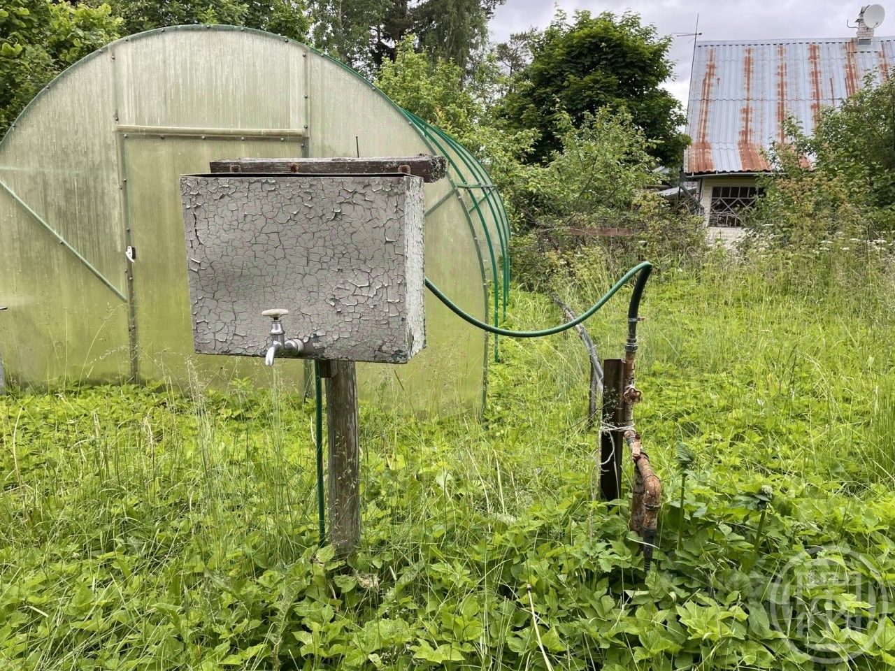 Участок 12 соток огорожен со всех сторон. Ровный, разработан, сухой, светлый и солнечный. По расположению крайний к лесу, на возвышенности. На участке баня из бруса с помывочной, дровенник и каркас для теплицы. Растут плодовые деревья и кусты.