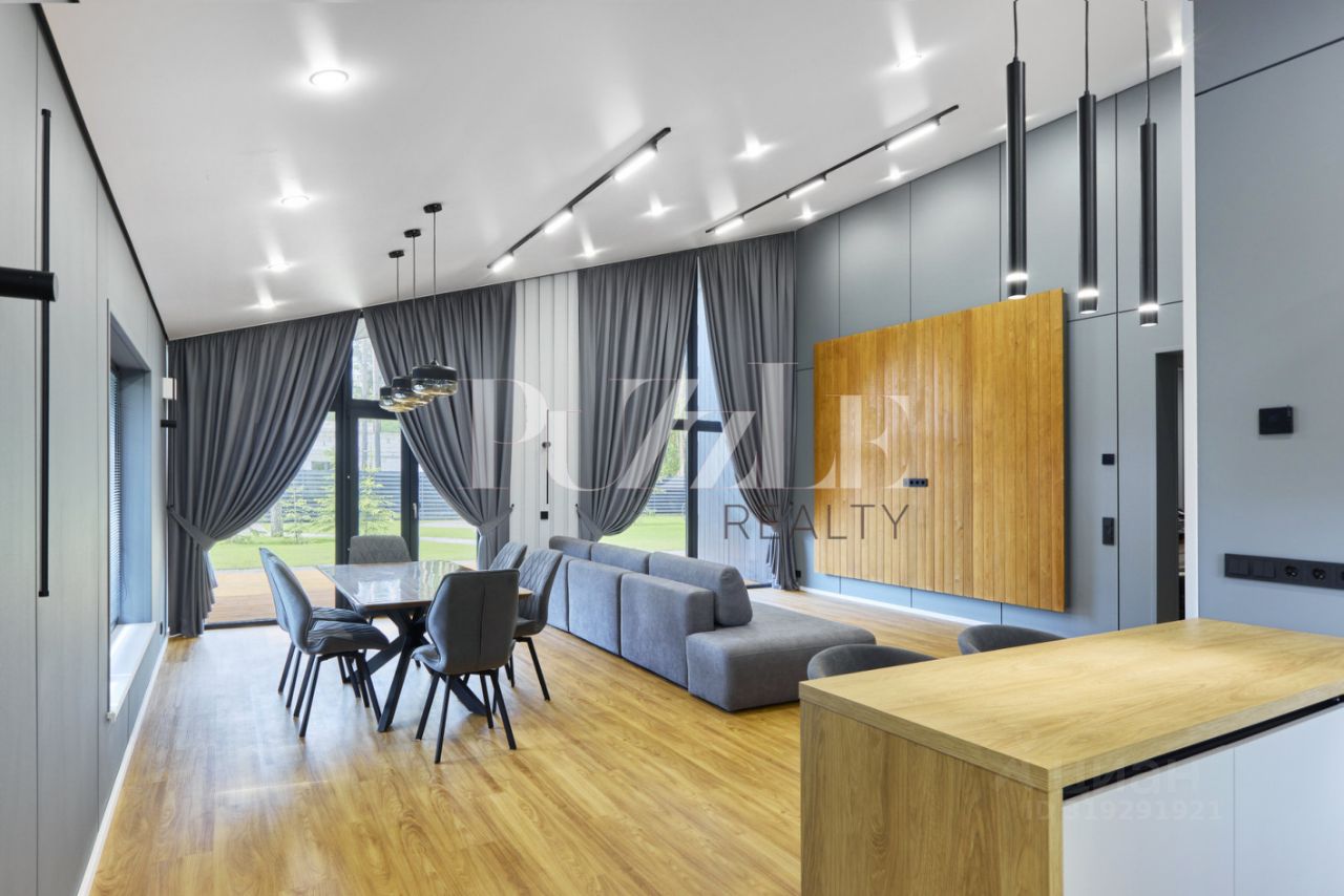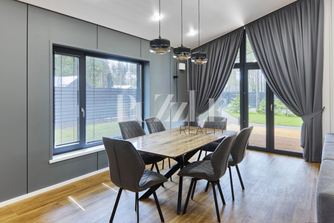 О доме: площадь 270 м, включая просторные террасы 70 м, стильная архитектура и современный дизайн, большая кухня-гостиная с панорамными окнами в пол и камином, три спальни, каждая со своей гардеробной, мастер-спальня с собственным санузлом, кабинет для работы или хобби, просторный санузел с финской сауной.