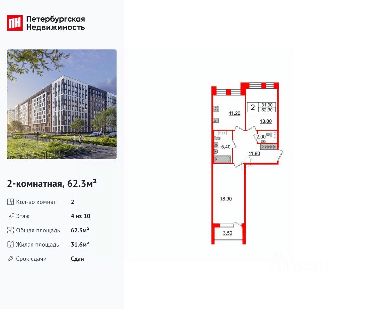 Удобная, классическая планировка, кухня 11.1 м², просторная прихожая 11.6 м². Общая площадь квартиры - 62.3 м², жилая 31.6 м², высота потолка 3 м.