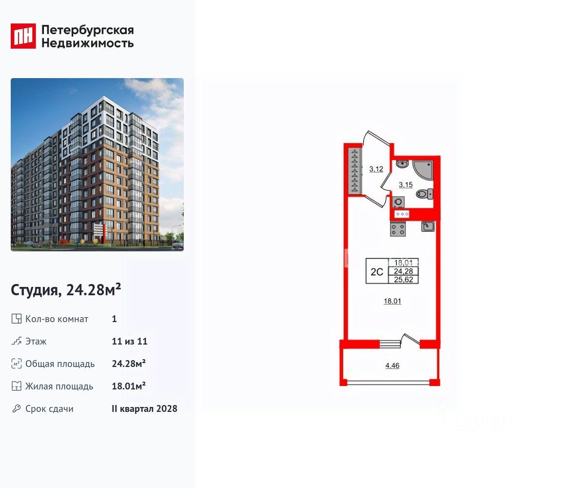 Общая площадь24,28 м2