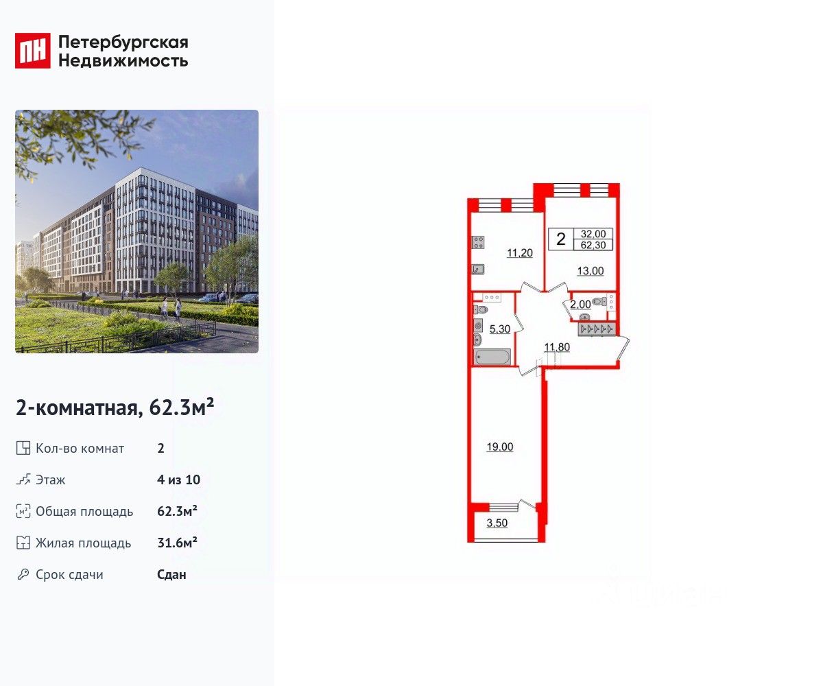 Продается просторная 2-комнатная квартира от застройщика в жилом комплексе ''Svetlana Park'' в современном Выборгском районе.