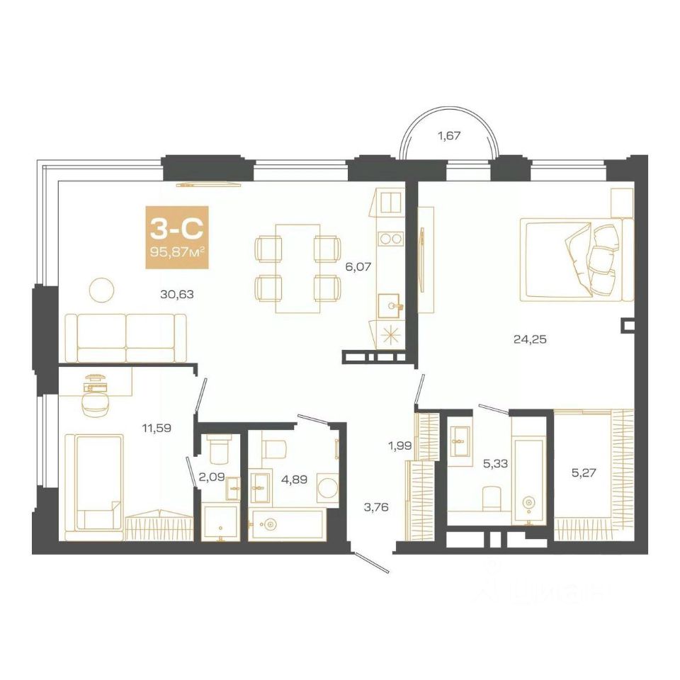 Общая площадь95,87 м2