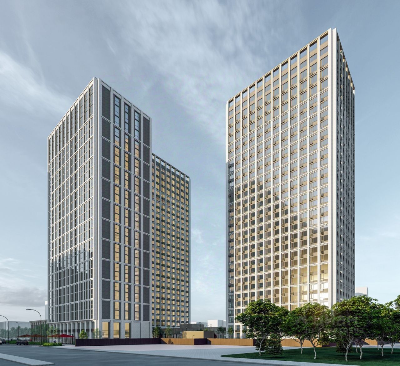 Проект предусматривает строительство 3х башен. В первом этапе строительства реализуется Башня А - 29 этажей, 712 апартаментов. Башня В - 24 этажа, 123 офиса, со сроком сдачи в 3 кв. 2026 года.