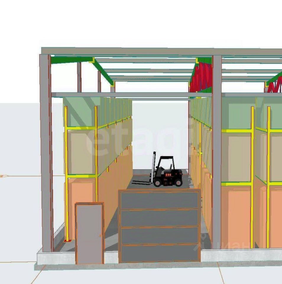 Характеристики: Общая площадь: 1000 м² Высота потолков: 8 м Нагрузка на пол: 5 тонн/м² Подъемно-секционные ворота: 4х4.