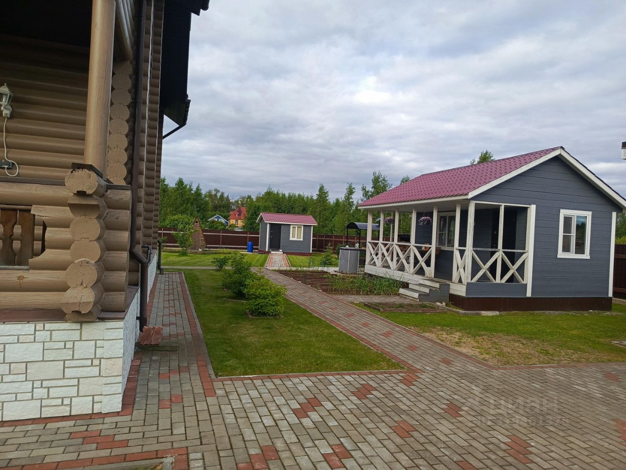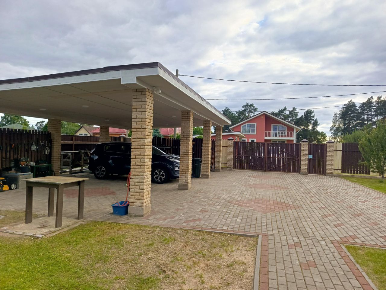 На участке располагается парковка для авто, летняя кухня, бытовка (сарай), мангальная зона, зона отдыха с детской площадкой и возможностью установки бассейна/батутов для детей.