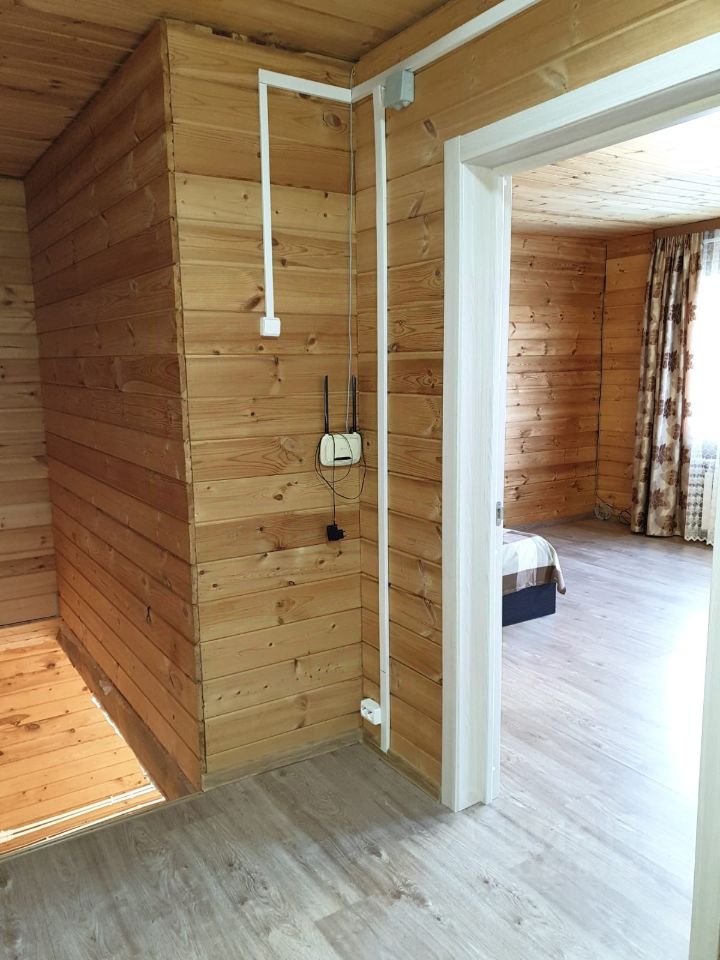 О ДОМЕ + Дом из профилированного бруса с внешним утеплением и сайдингом + Экологически чистый природный теплый деревянный дом с отдельной котельной, пристроенной к дому + год постройки дома 2015г. + общая площадь 174 кв. м. + на 1 этаже расположены кухня 23 кв. м., гостиная 28 кв. м., прихожая 28 кв. м., ванная 7кв.м., туалет и лестница + на 2 этаже расположены 2 изолированные комнаты площадью 31кв.м. и 23 кв. м. + локальная канализация 2 колодца + газовый двухконтурный котел BAXI управляется из дома через электронный регулируемый термостат по 4 временным зонам на каждый день недели + электрический котел на 4,5 кВт + горячая вода - электрический бойлер на 85 литров + оптоволоконный интернет, Wi-Fi + спутниковое телевидение НТВ+