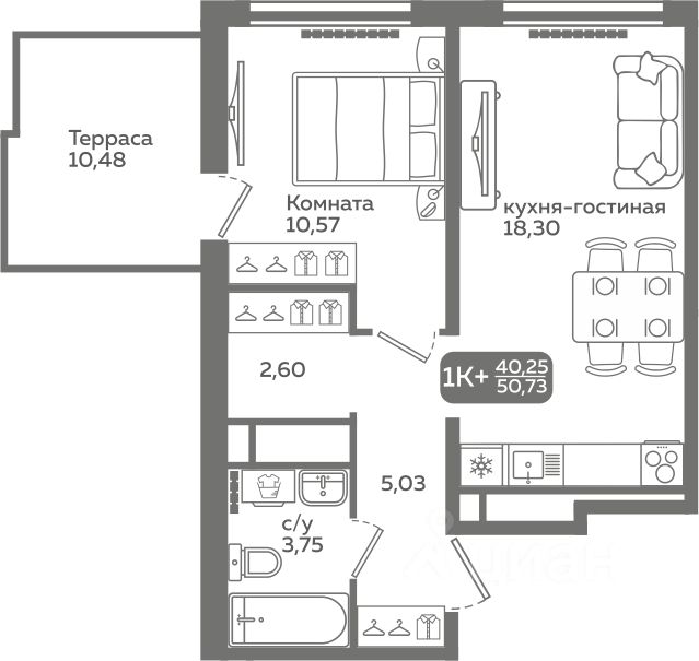 Прямая продажа от застройщика! Продается однокомнатная квартира в строящемся ЖК ''Меридиан Слобода'', срок сдачи: I-кв. 2027, общей площадью 40.25 м², на 18 этаже из 21. Площадь кухни — 18.3 м².