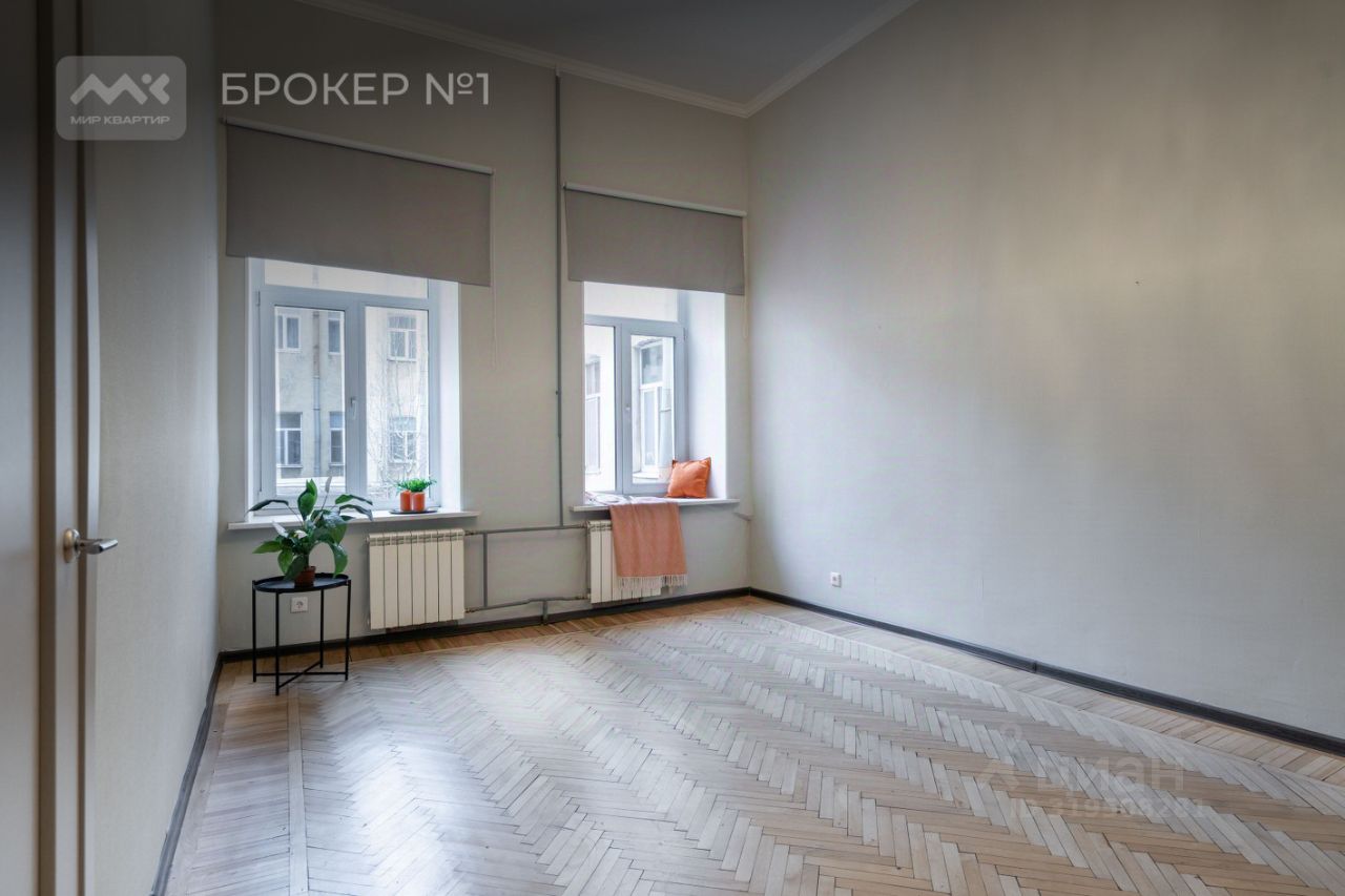 Просторная четырехкомнатная квартира без перепланировок. Расположение несущих стен позволяет внести изменения и подстроить помещения под свои пожелания. Высокие потолки 4,15 метра придают квартире объем и увеличивают пространство. Окна кухни и двух комнат выходят в чистый просторный двор с газоном, а двух других комнат на Кузнечный переулок. Вход в парадную со двора. Чистый закрытый двор с выходом на Кузнечный переулок и улицу Марата, есть возможность парковки для жителей дома. Парадная содержится в чистоте, нет посторонних запахов.