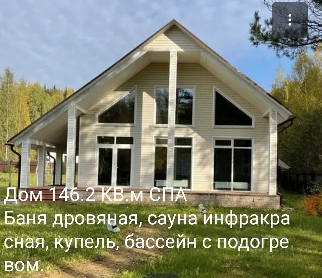 Дом можно использовать, как гостевой, так и для обслуживающего персонала. На 1- м этаже кухня- гостиная 23.0 кв.м, два сан.узла. На 2-м этаже-- две комнаты 16.3+18.0 КВ.м. Дом полностью оборудован мебелью, кухонным гарнитуром и техникой. #### Банный комплекс 146.2 кв.м. 2014 г п. - фундамент-- бетонные блоки - стены- пеноблок - крыша- металлочерепица --дровенная баня -- инфракрасная сауна --купель --бассейн 8*5 метров с массажным фонтаном Две душевые кабины, сан.узел, тёплые полы, система для очистки воды автоматическая, что позволяет пользоваться бассейном круглогодично, автоматическая вентиляционная система. #### Комплекс можно использовать, как для личного проживания , так и для сдачи в аренду, проведения корпоративных мероприятий. Три дома и банный комплекс полность оборудован для комфортного проживания и всё остаётся новым собственникам. Въезд в ДНТ ''Заречье' --- шлагбаум с пунктом охраны, въезд по ''звонку'. По всему комплексу установлено видеонаблюдение и сигнализация. Проведен интернет , телевидение НТВ Плюс. Водоснабжение - централизованный водопровод. Канализация - локальная. Мощность - 30 кВт. Периметр огорожен профлистом, два въезд через ворота с дистанционным ключом ( или вручную). Все дорожки в комплексе выложены брусчаткой, освещение-- декоративные фонари, облагороженный пруд. На территории --- сосны, ели, березы , а так же садовые деревья: яблони, груши, черешни, кусты крыжовника и сирени.