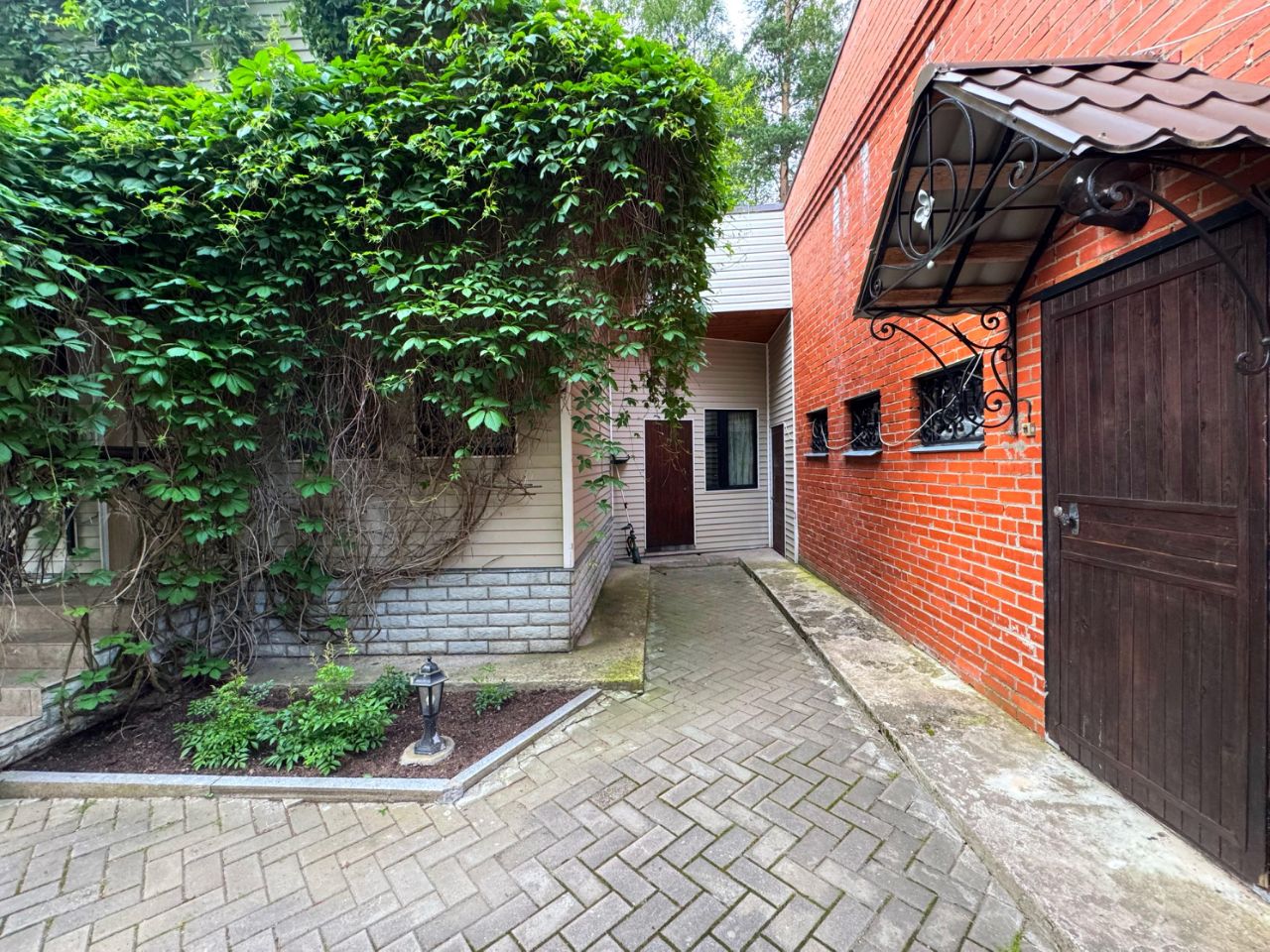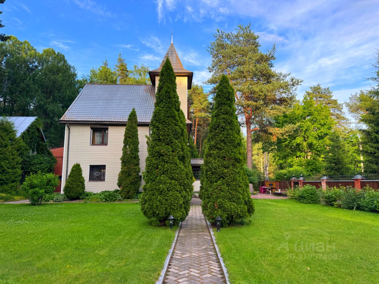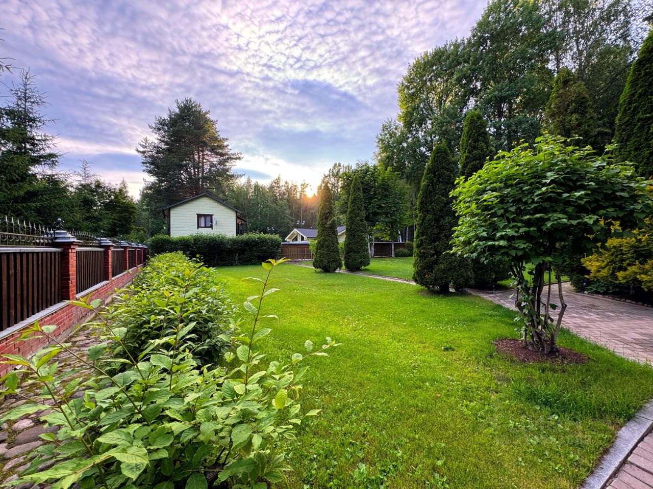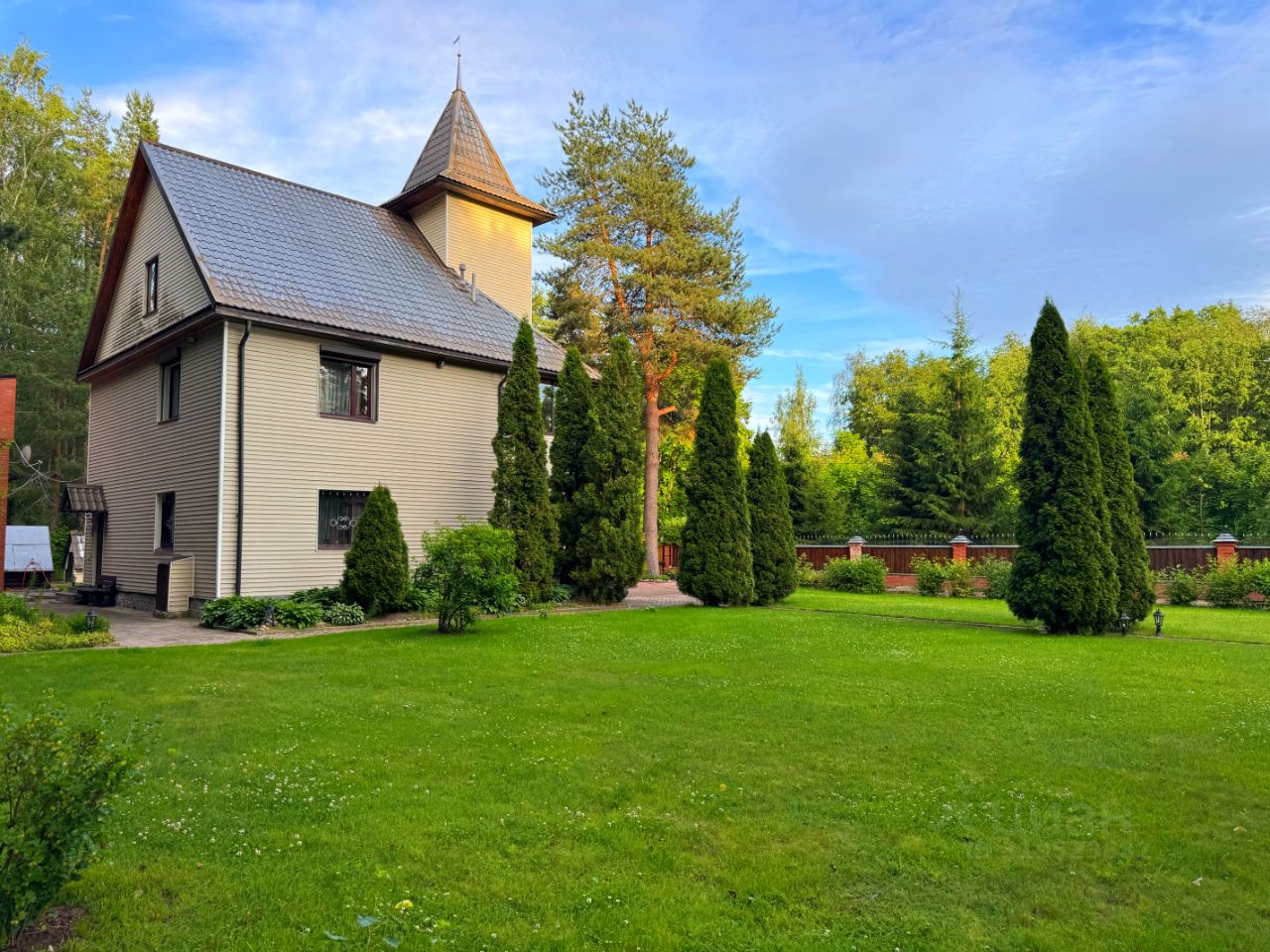 Территория участка просторная, облагороженная и огороженная, вокругвековые деревья, отдельный выход в лес, зона барбекю, детская площадка, теплица.