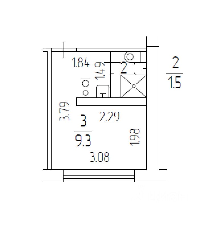 Студия площадью 11 кв.м, 7 кв.м отдельная комната и блок санузел+кухня 4 кв.м разделены стеной см. план. Окно со стеклопакетом смотрит в тихий зеленый двор. В студии оборудован совмещенный санузел, место под кухню.