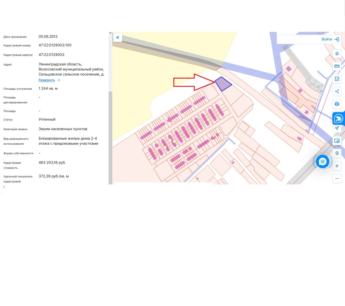 Kaтeгopия зeмeль: Земли пoceлений (земли населенных пунктов) блокированные жилые дома 2-4 этажа с придомовыми участками Земельный участок по адресу: Ленинградская область, Волосовский район, д. Каськово