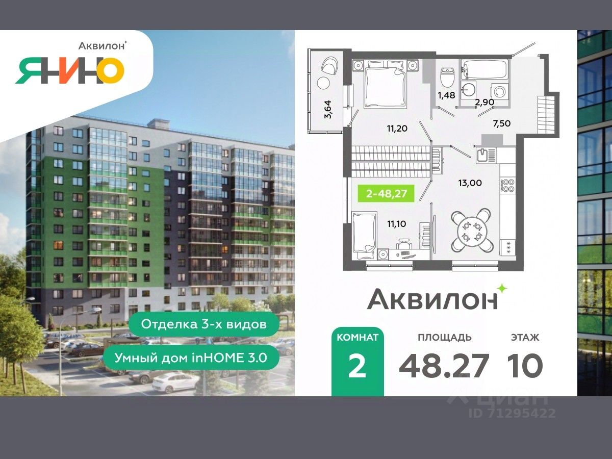 ЖК ''Аквилон ЯНИНО'' Жилой комплекс комфорт-класса ''Аквилон ЯНИНО'' находится в одной из самых перспективных локаций, в непосредственной близости от Санкт-Петербурга. Объект находится ближе всех в округе к выезду на КАД. 2 корпуса средней этажности Группы Аквилон отвечают самым современным требованиям: безопасность, технологичность, лаконичность, практичность и качество. Комплекс ''Аквилон ЯНИНО'' предлагает полноценную внутреннюю структуру для создания комфортной жизни и решения любых повседневных задач.