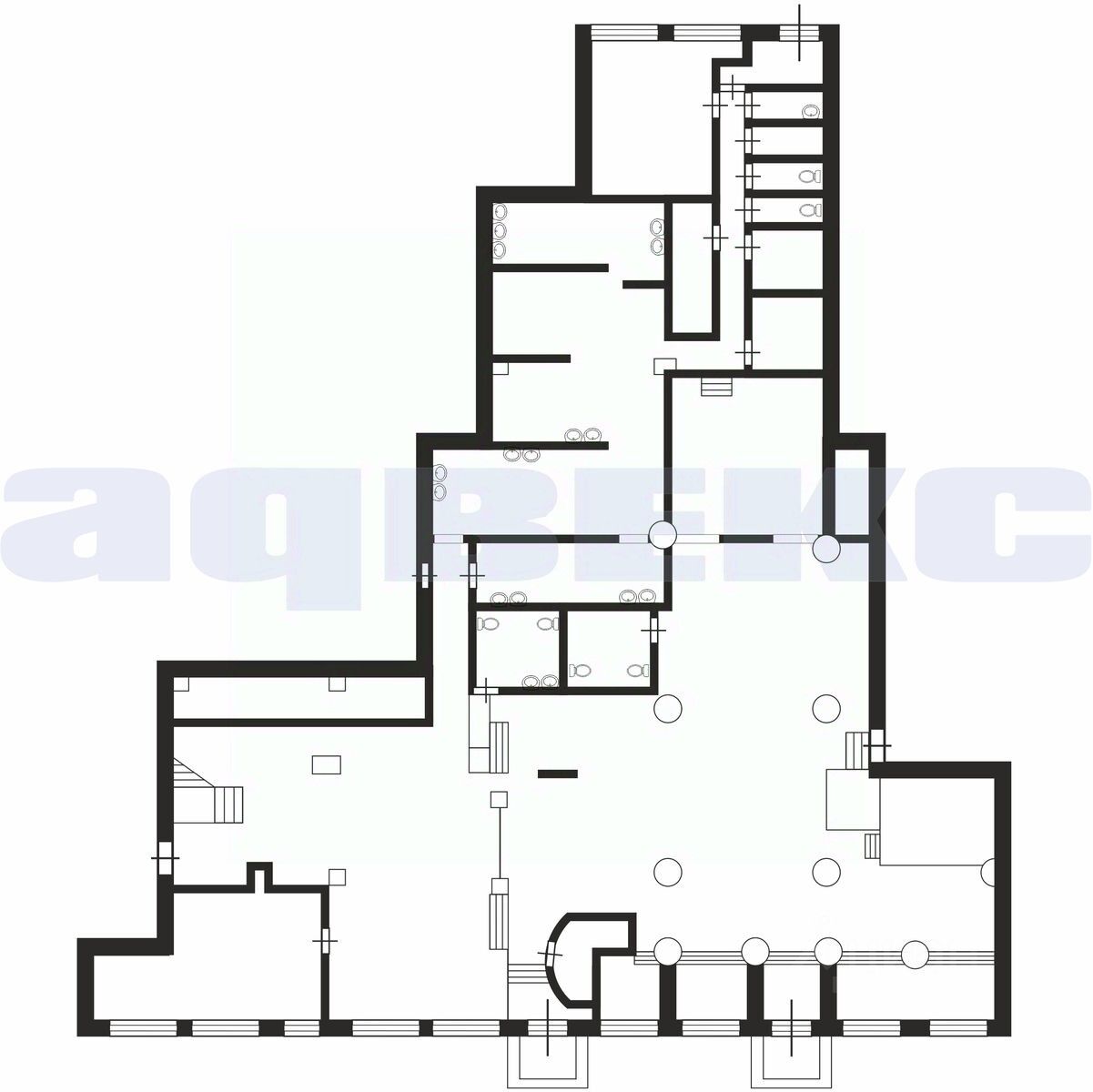 - 2 санузла (по 2 в каждом) для посетителей
