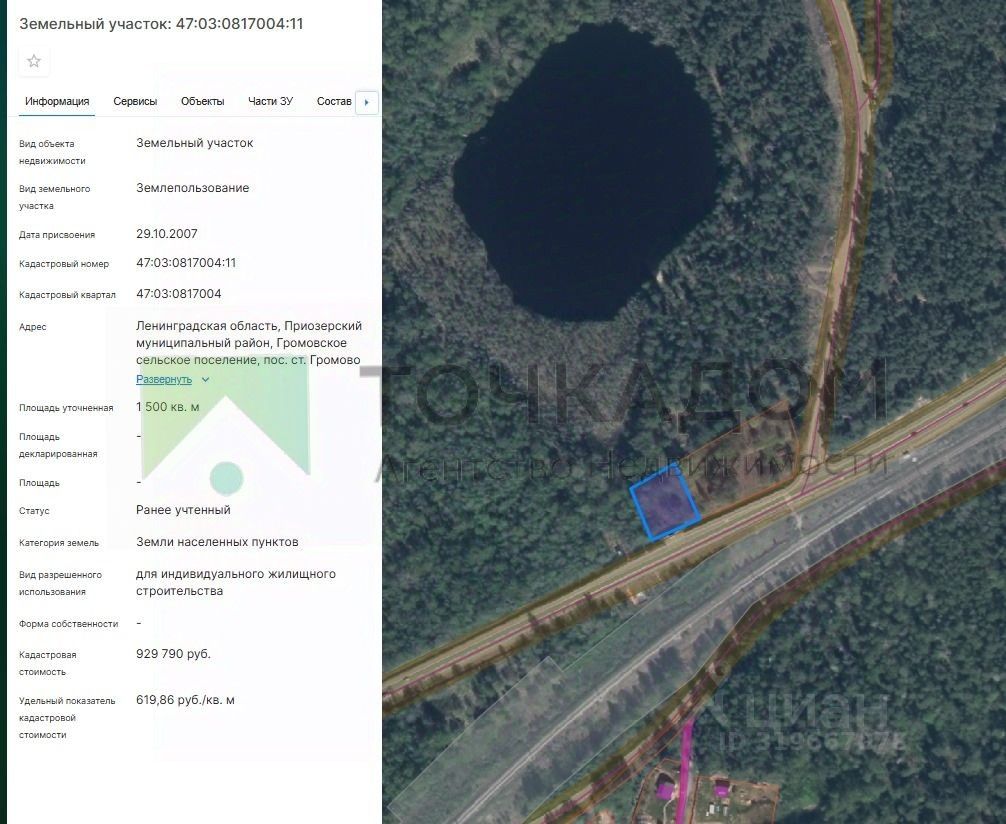 Участок ровный, сухой, его площадь составляет 15 соток. Вид разрешенного использования — ИЖС, можно строить жилой дом без ограничений. Категория земель: земли населённых пунктов. Есть электричество 15 кВт, заведено на участок. Находится в уникальном природном месте — между тремя чистыми озёрами. Здесь можно провести отличный отдых всей семьей - прогулки, рыбалка и активное летнее времяпрепровождение!