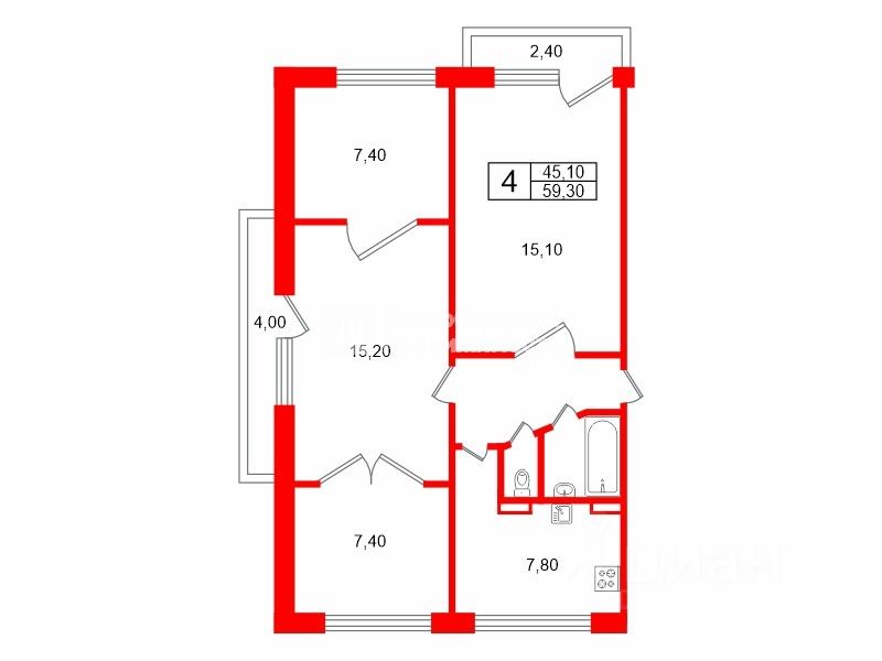 Номер объявления: 19149 - назовите его оператору. Четырехкомнатная квартира окнами на 3 стороны света: на восток, на запад и на юг, имеется 2 открытых балкона.