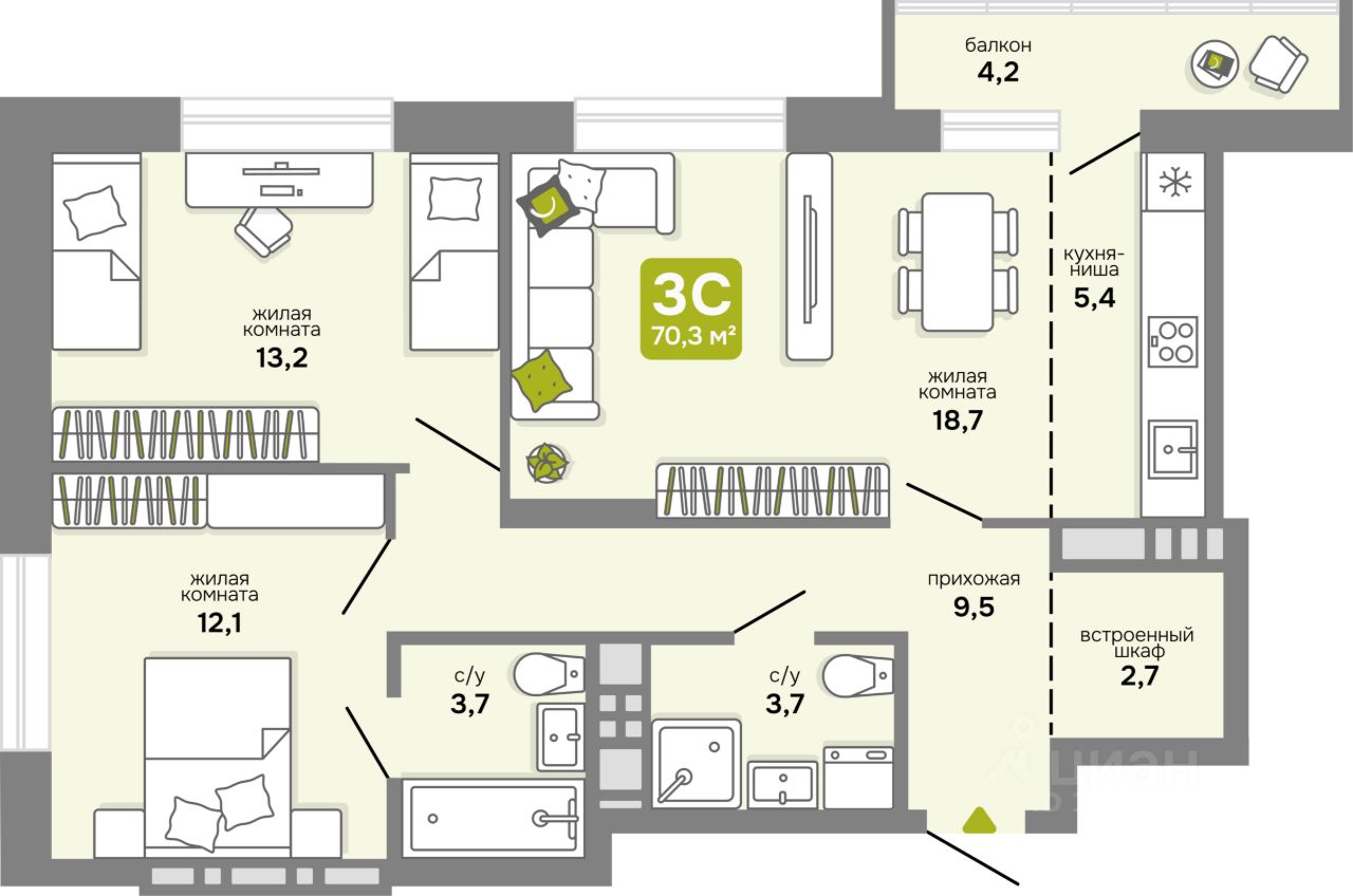 Общая площадь70,3 м2