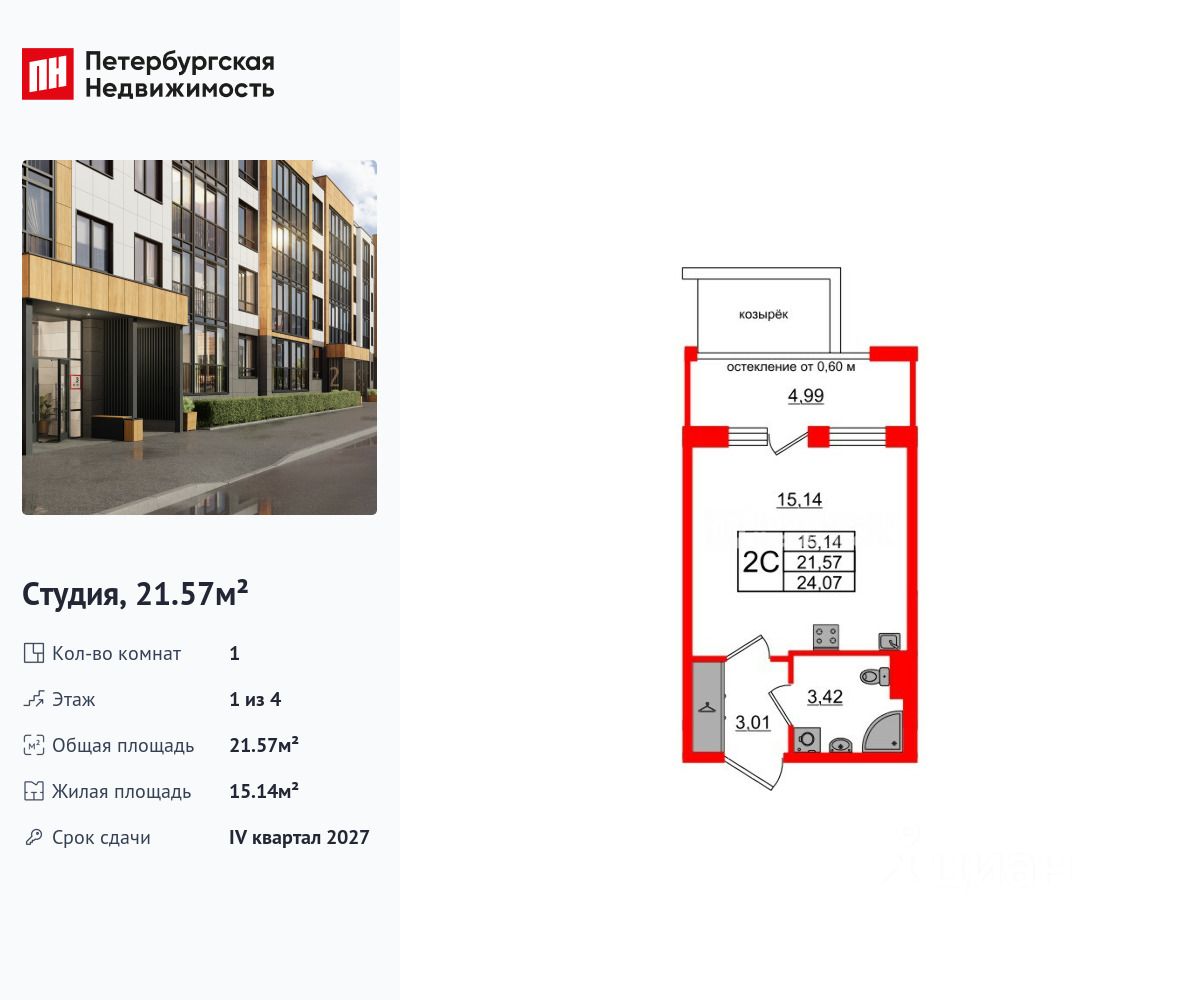 Общая площадь21,57 м2