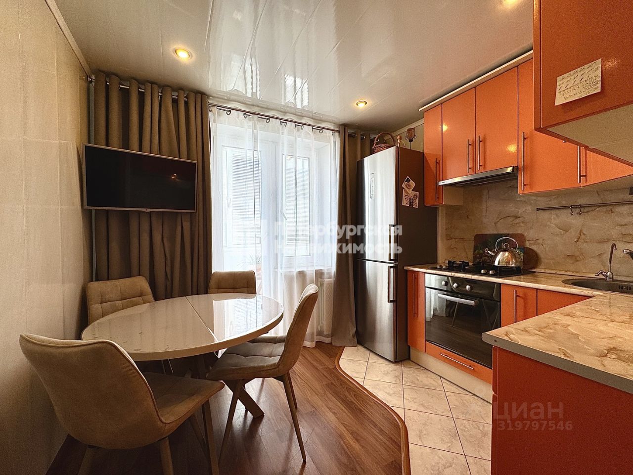 В квартире остается кухонный гарнитур, вся встроенная техника, мебель (кроме стола и стульев).