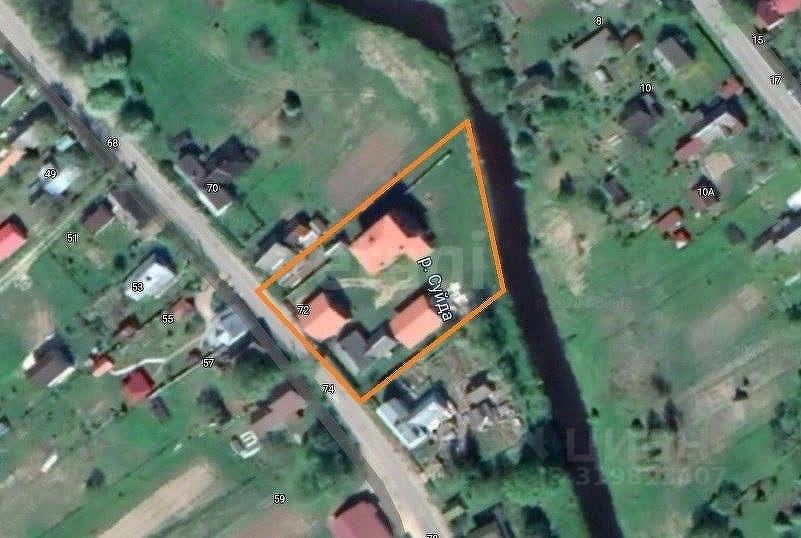 Участок площадью 22 сотки + 8 соток береговой линии с четырьмя 4 домами общей площадью около 900 м² расположен в живописном месте на берегу реки Суйда в Гатчинском районе неподалеку от Вырицы.