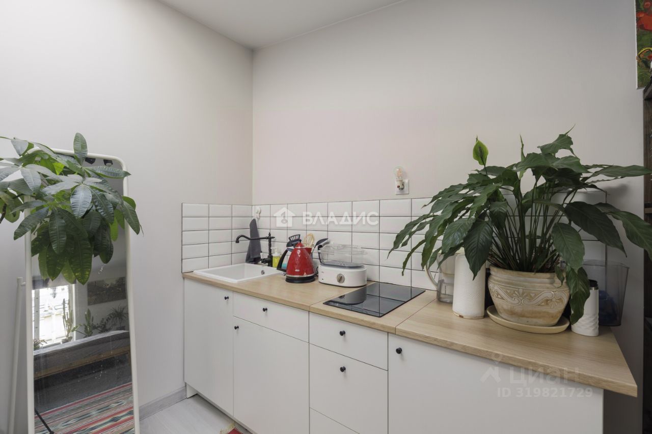 Планировка — свободная и гибкая. Пространство делится на две зоны: спальня, совмещённая с кухней, и отдельный кабинет — можно использовать под рабочую зону или переоборудовать под личные нужды. Вся мебель и техника остаются новым владельцам — заезжай и живи. Установлены бойлер и тёплый пол в ванной — комфорт гарантирован.