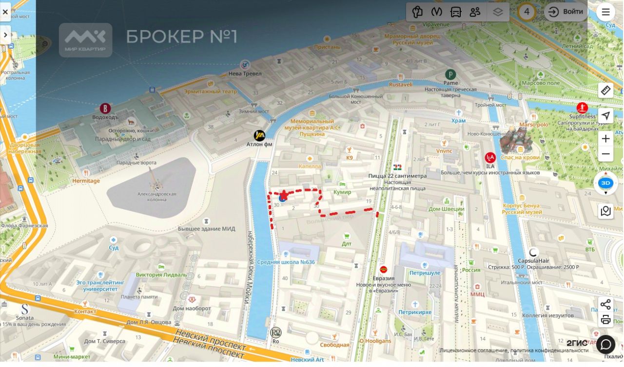 Транспортная доступность: Ст. метро Адмиралтейская - 7 минут пешком Ст. метро Невский проспект - 7 минут пешком.