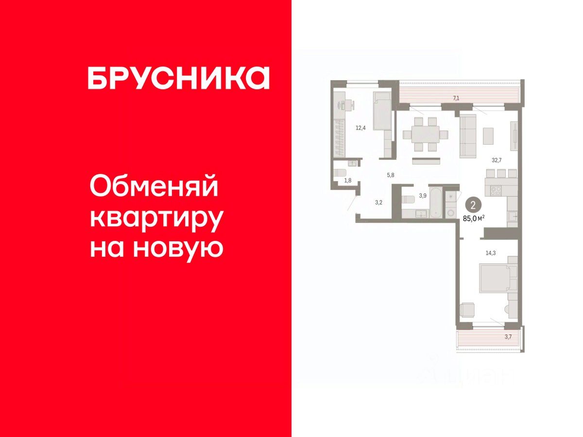 Квартира с кухней-гостиной и двумя спальнями в квартале ''На Гастелло''. Особенности планировки: балкон, окна на две стороны, предчистовая отделка, разнесённые спальни. квартиры в нашей базе: ГСТ-01-4-207.