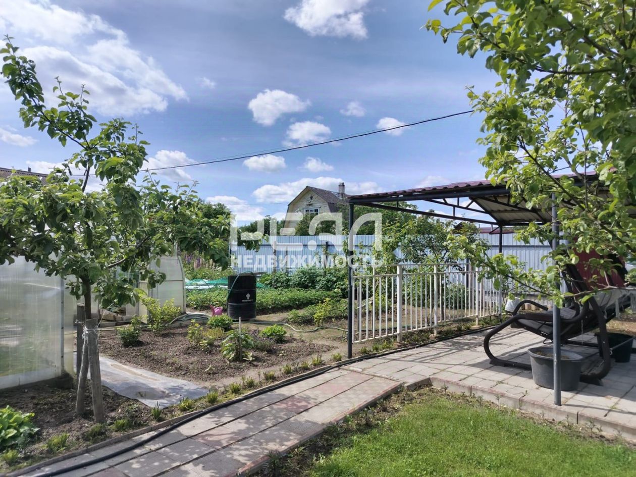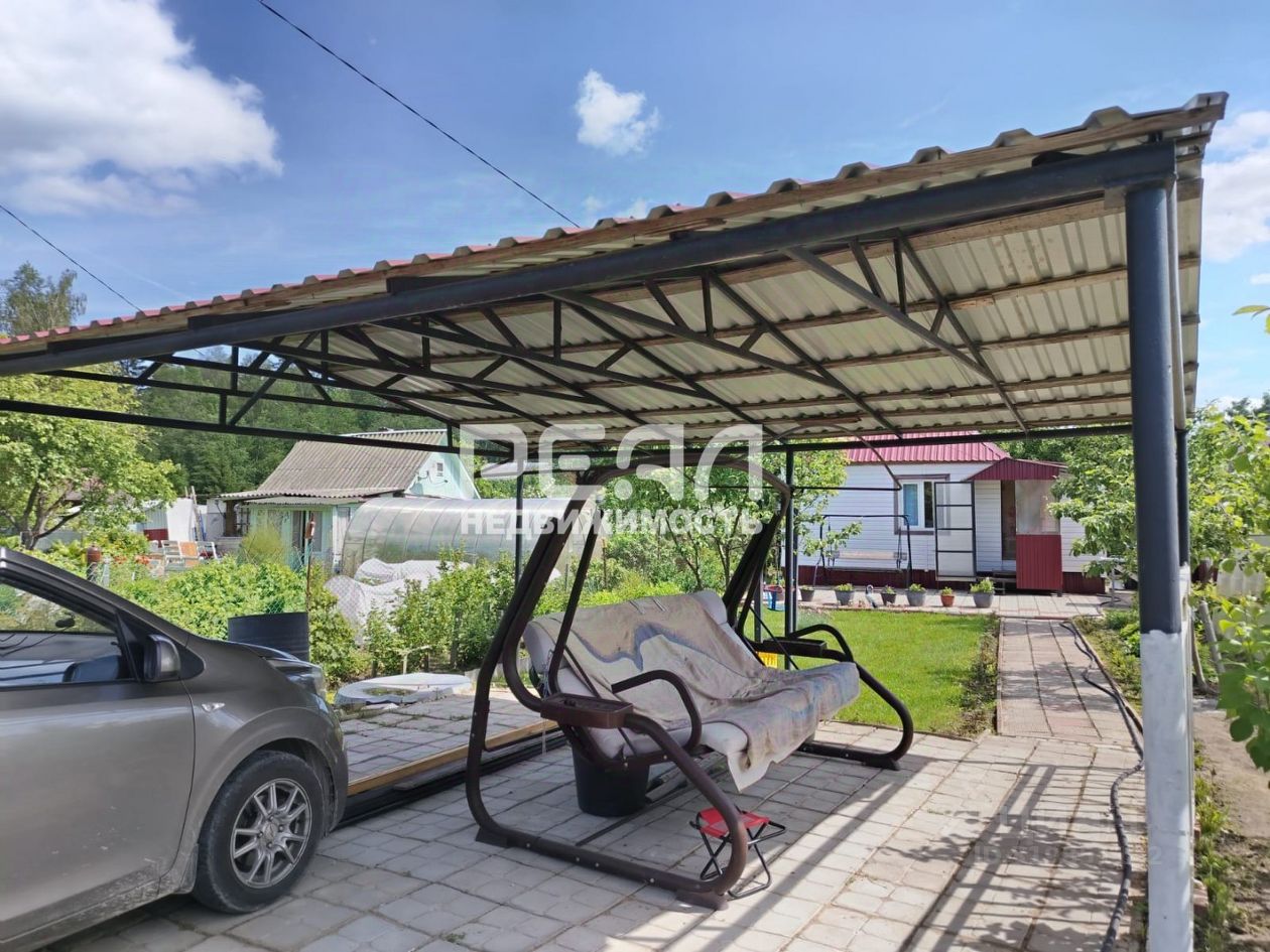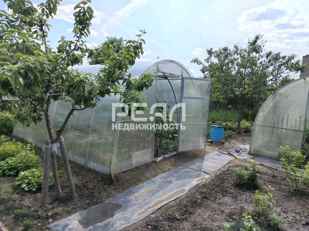На участке имеются мангальная, скважина, сарай, гараж, навес для машин, вымощенные дорожки и место отдыха, забор, три теплицы. Три яблони, слива, крыжовник, смородина, малина, шесть сортов клубники.