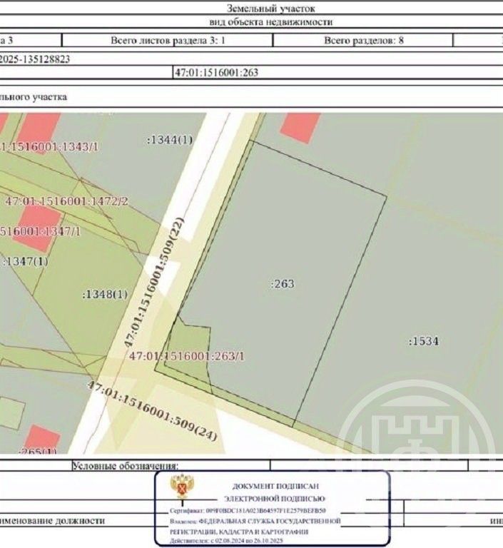 339557 Продается земельный участок в п.Коробицыно 15 соток ИЖС ( аренда 49 лет с правом выкупа 3% от кадастровой стоимости ). Аренда от 16.06.2010г. Участок угловой, правильной формы, сухой, ровный .Эл-во 15 квт, подключен центральный водопровод. Категория земли - населенных пунктов, разрешенное использование- под строительство индивидуального жилого дома. Кадастровый номер:47:01:1516001:263. До горнолыжных курортов 5 минут на машине 'Красное озеро' Золотая Долина 'Снежный. До центра поселка 10 минут пешком где есть сетевые магазины, кафе, школа, дет.сад , автобусная остановка и т.д. Отличное вложение денег для дальнейшего строительства домика под сдачу в аренду или для постоянного проживания. Участок можно разделить на два. Один взрослый собственник.