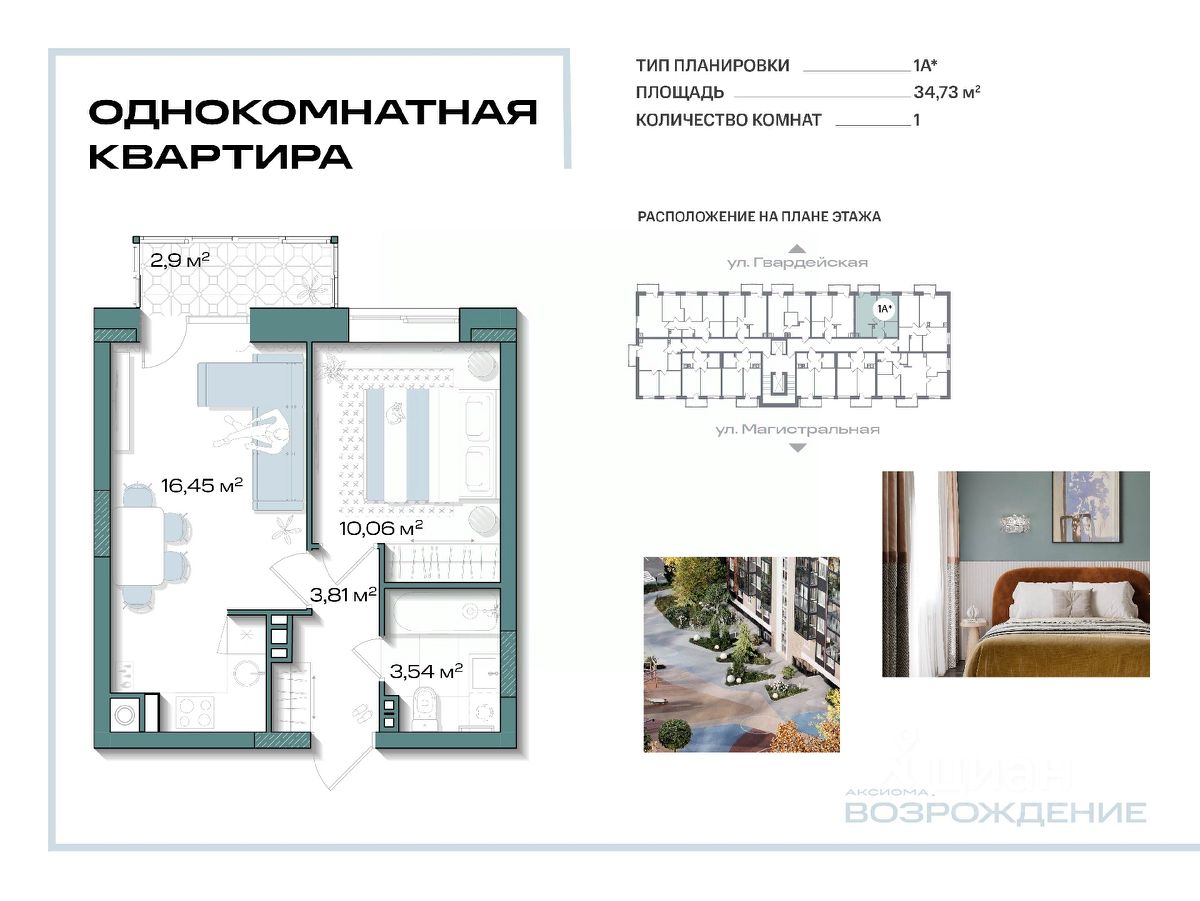 Общая площадь34,73 м2