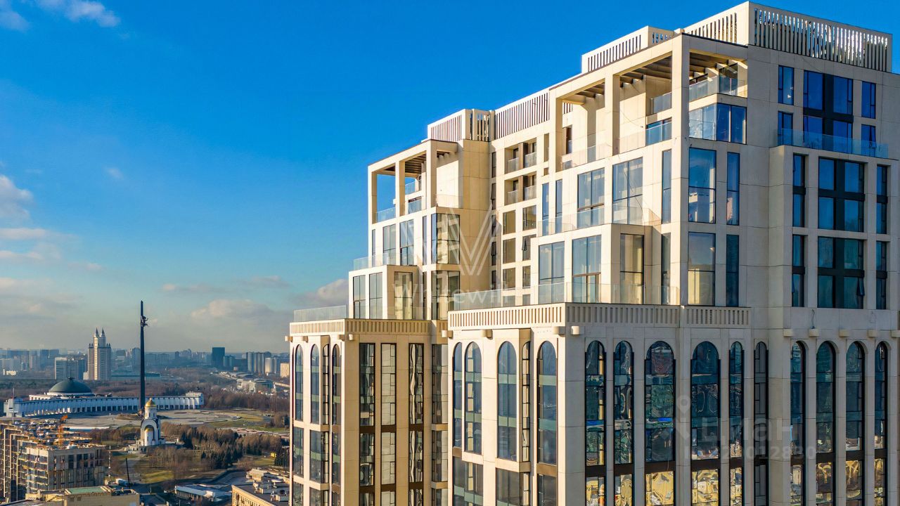 Главное о доме. ''Поклонная 9'' — премиальный городской дом с сервисом пятизвёздочного отеля. На нижних этажах работает SO/ Moscow: круглосуточные сервисы, room service, spa, хаммам, сауна, бассейн, фитнес и рестораны. Выше — апартаменты с панорамными окнами и видами на Парк Победы, Москву-Сити, Воробьёвы горы и Кутузовский проспект. На самом верху — коллекция пентхаусов Club 100. Архитектура сочетает мотивы неоклассики и ар-деко, вспоминает московские высотки и нью-йоркские небоскрёбы, Н-образный силуэт и облицовка натуральным камнем создают монументальный образ. Внутри — дизайнерские отделки на выбор, продуманная входная группа и клубная инфраструктура, чтобы не разрывать день на поездки по делам. Это адрес для тех, кто хочет жить у большого парка и пользоваться отельным уровнем комфорта каждый день.