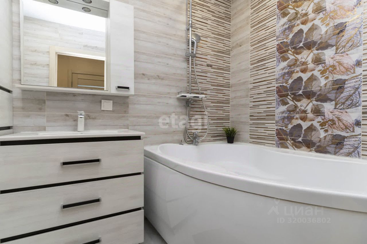 В квартире выполнен хороший косметический ремонт, включающий в себя следующие элементы: - Ламинат, - Натяжные потолки с встроенными светильниками, - Обои. - В санузлах стены облицованы керамической плиткой.
