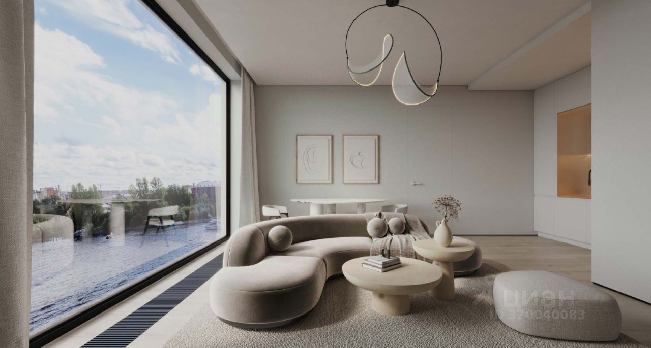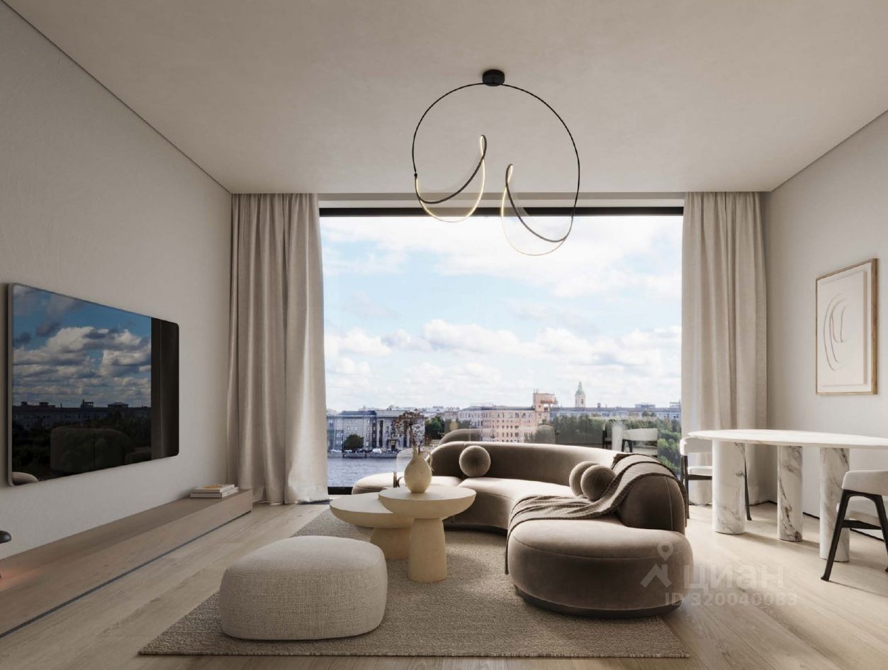 4Е с прямым видом на Неву и Петровский пруд - потрясающий вид из каждой комнаты. С отделкой ''Светлый кашемир''.