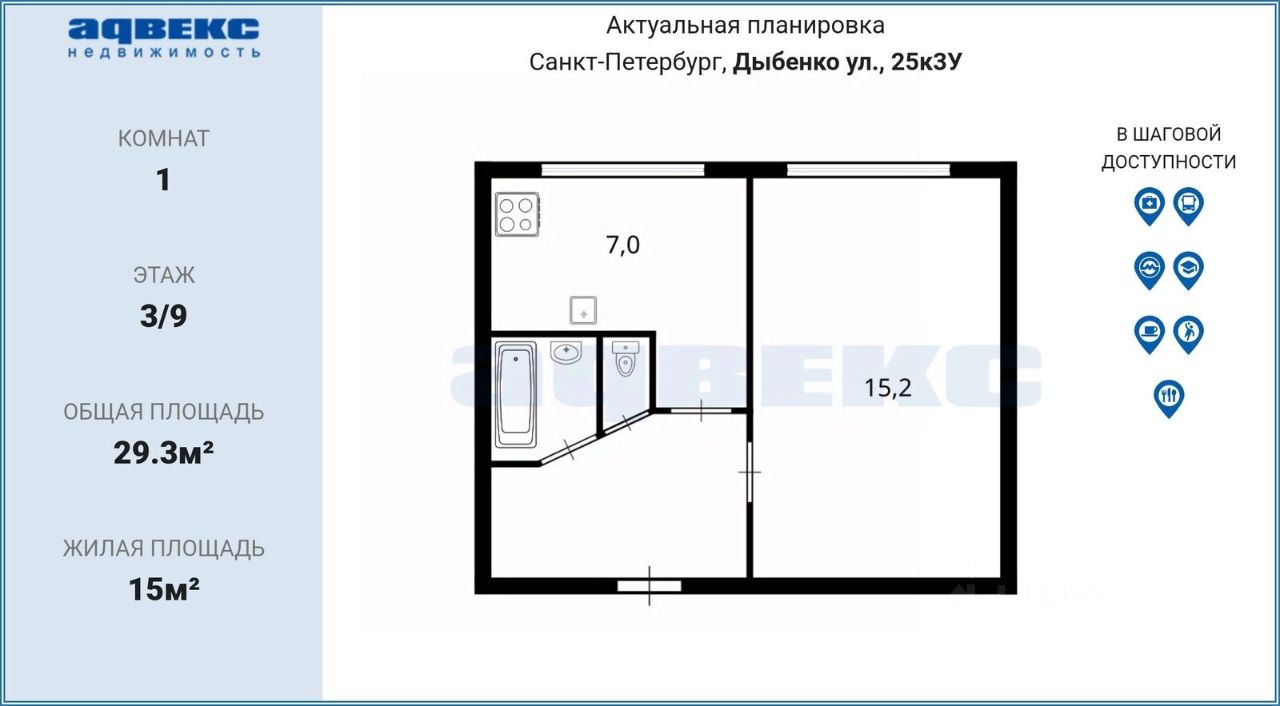 ID: 1914152 В продаже уютная солнечная 1- комнатная квартира в квартале обжитого Невского района! Квартира находится на 3 этаже 9-ти этажного дома! Квартира готова к проживанию! По желанию можно сделать косметический ремонт! Квартира идеально подойдет и для сдачи в аренду! В данной локации аренда от 30 000 руб. в месяц плюс КУ! Парадная - чистая, 1 лифт - пассажирский. Продуктовые магазины, кафе, булочные, аптеки, салоны красоты, детские развивающие центры, пункты доставки все рядом! Во дворе школа и детский сад. Крупные торговые центры, гипермаркет, сетевые магазины, кафе, рестораны, отделения банков 5 минутах ходьбы. Парки в пешей доступности. Отличная транспортная доступность как для пешеходов, так и автолюбителей! •до станции метро ''Улица Дыбенко'' 5 минут пешком, •до остановки общественного транспорта - 5 минуты пешком, •в любую точку центра города на метро - не больше 20 минут, •КАД 10 минут на автомобиле, •центр города - 20 минут на автомобиле!
