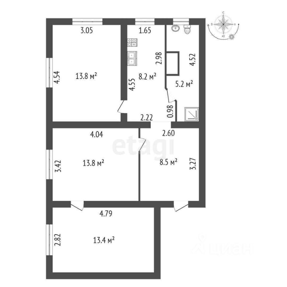 Совместный санузел. Есть бойлер.