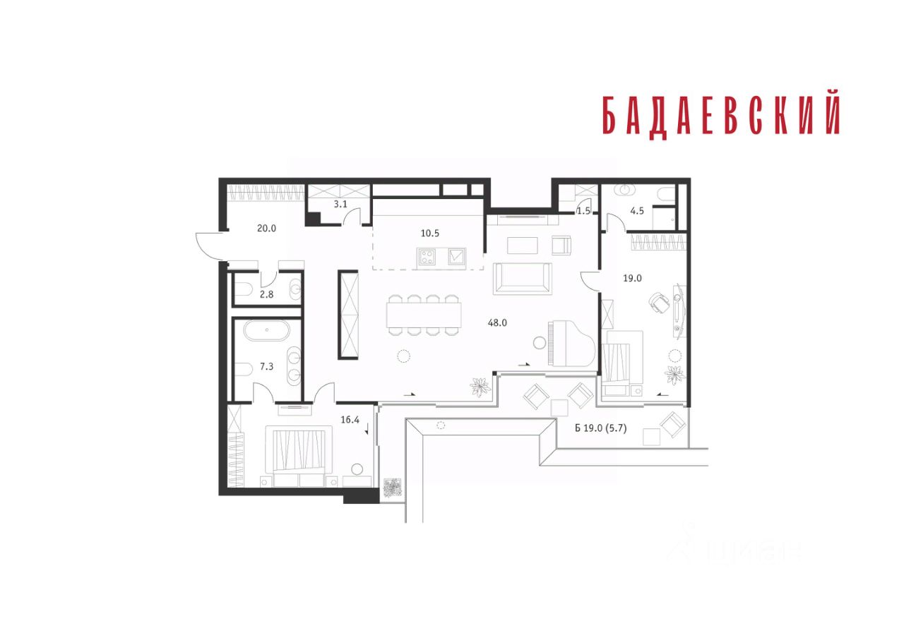 В ''Бадаевском'' исторические здания завода и футуристические ''парящие'' дома создают единый комплекс, который станет новой достопримечательностью и символом Москвы. Панорамное остекление, террасы и веранды дарят неординарные и захватывающие виды.