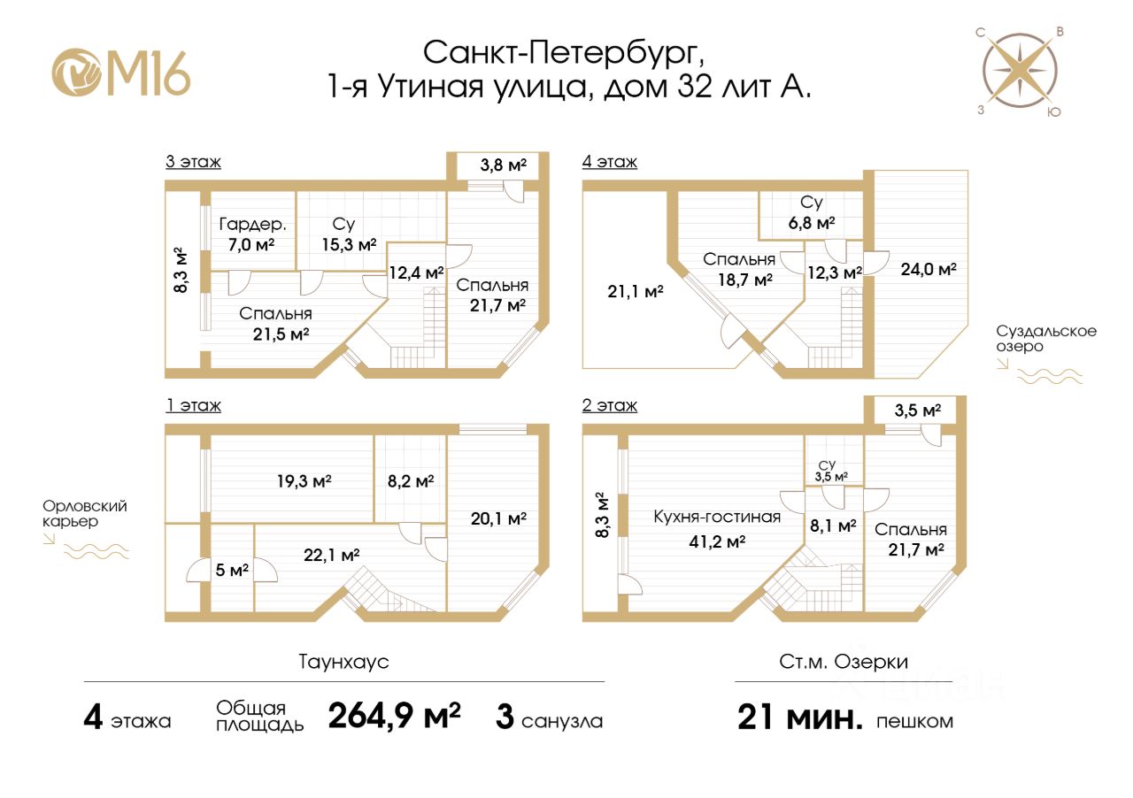 Продается 4 этажный таунхаус в живописном тихом месте по адресу:1-я Утиная улица, дом 32.