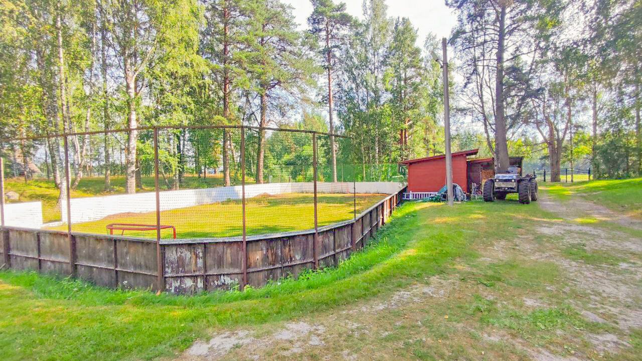 ID: 311531 На берегу р. Вуокса-Вирта (200 метров) , находится закрытый лесным массивом и въездными воротами от посторонних глаз, ''семейный'' поселок на 5 домовладений. В общем пользовании владельцев находится : футбольное (зимой хоккейное) поле, теннисный (волейбольный, баскетбольный) корт, 2-ух этажная баня с бильярдной комнатой и зоной отдыха, примыкающая к отдельному пирсу со спуском на воду (есть лодки для рыбалки, и переправы на другой берег озера). Также на территории поселка, есть подсобные строения технического и складского характера. В поселке проживает обслуживающий персонал. Вся территория поселения окружена лесом, где растут грибы и ягоды, и можно охотиться. В зимнее время, пройдя 200 метров от дома, можно выйти на озеро и кататься на лыжах или заняться зимней рыбалкой!