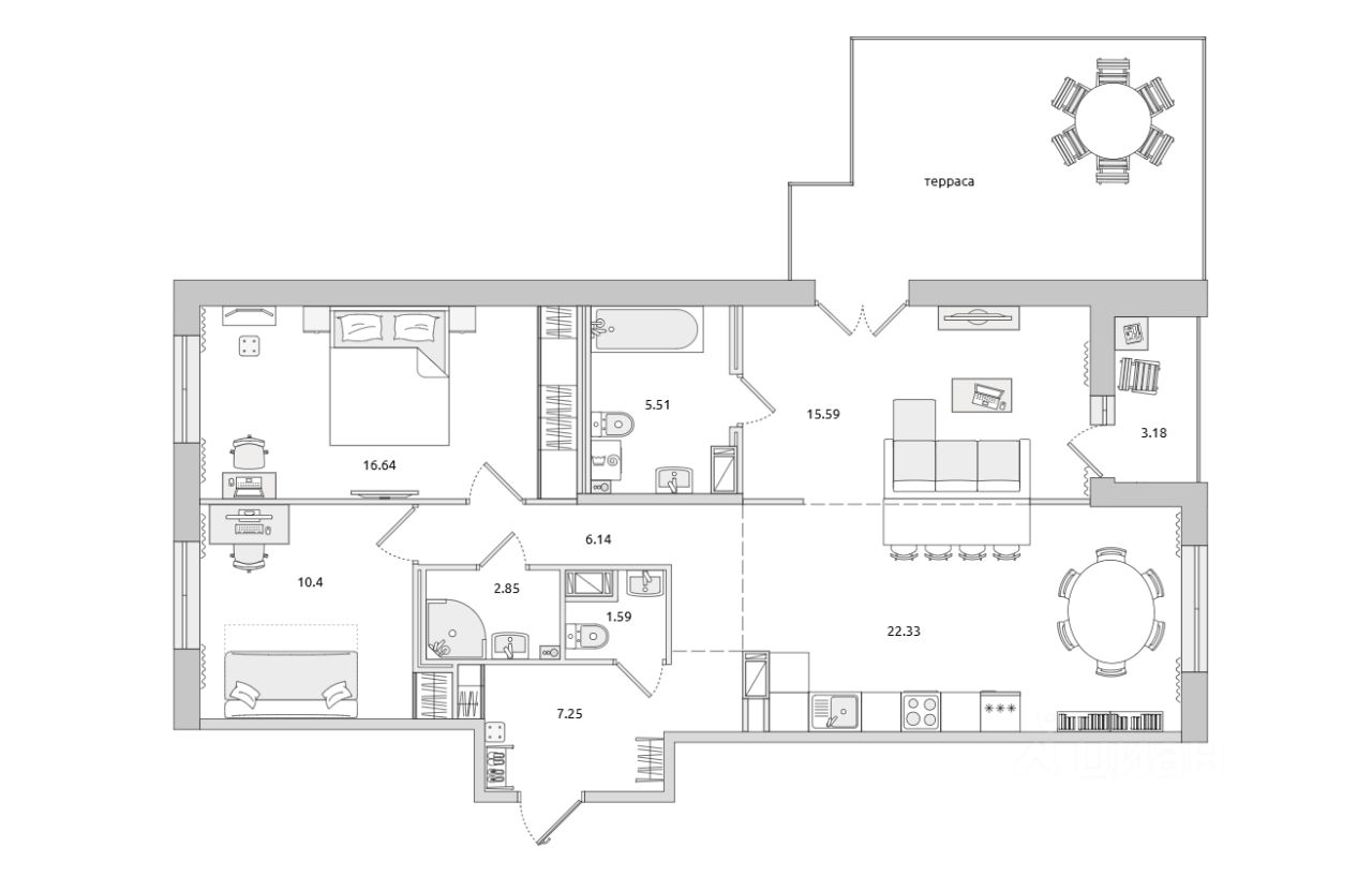 Квартира без ремонта — это отличная возможность создать интерьер своей мечты. Просторная кухня позволит воплотить любые кулинарные задумки и станет местом для семейных ужинов. В квартире два отдельных санузла, что удобно для большой семьи. Дополнительным плюсом являются две лоджии, где можно обустроить уютные зоны для отдыха или рабочего пространства.
