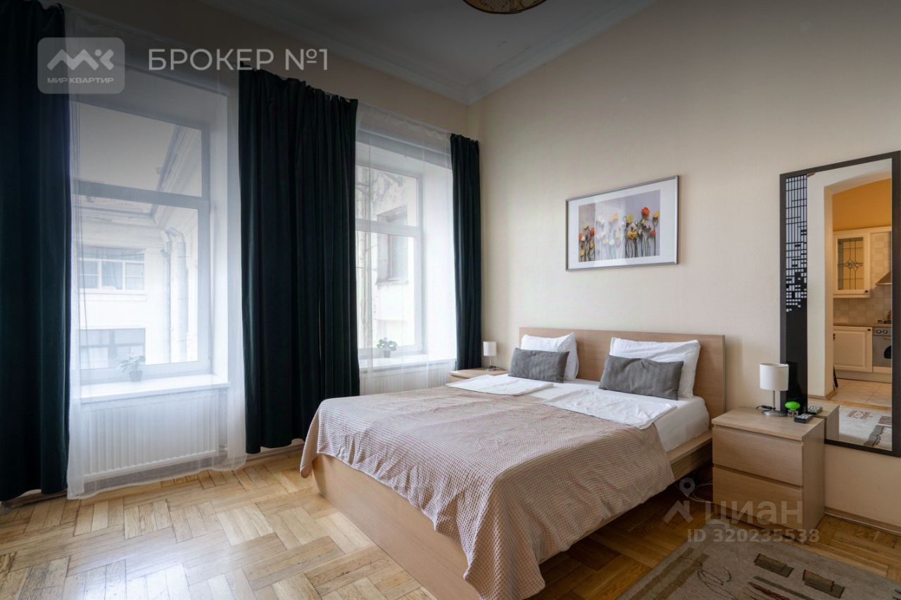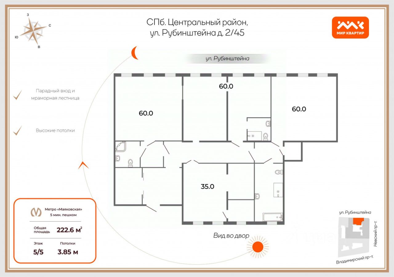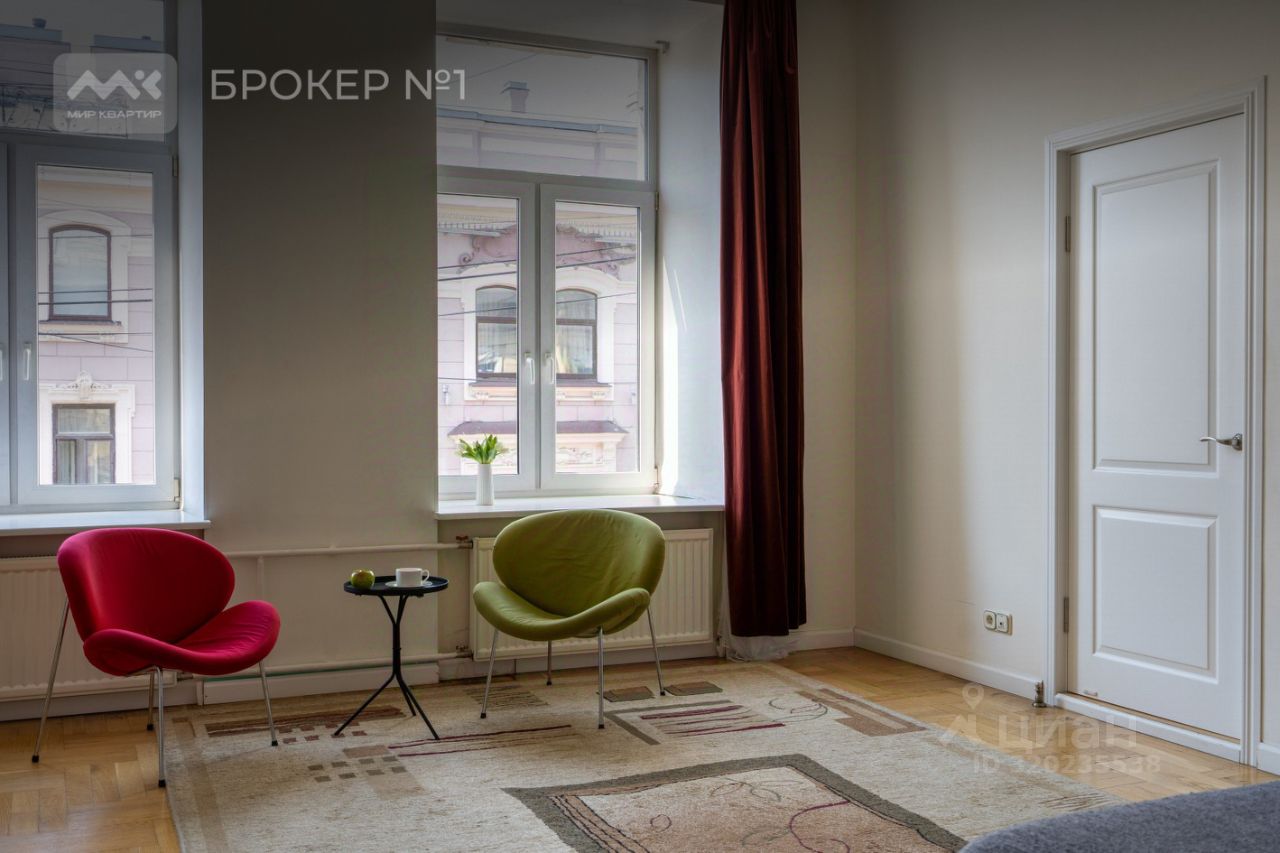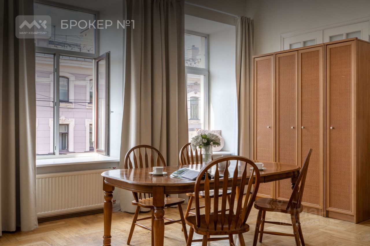 Вход в парадную с улицы Рубинштейна, Вас встретит пологая мраморная лестница, но лифт тоже есть. Из окон открывается вид на атмосферные петербургские крыши