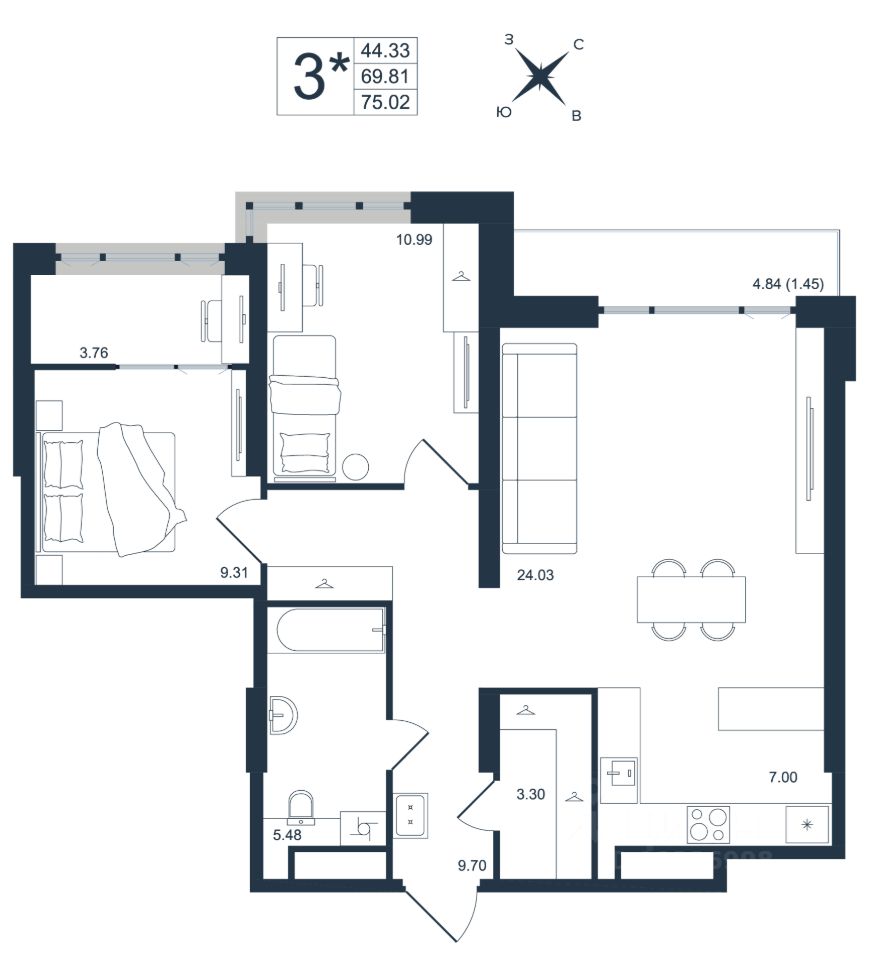 Продаётся 3-комнатная квартира в строящемся доме (Дом 1), срок сдачи: III-кв. 2027, общей площадью 75.02 кв.м., на 15 этаже. Новый жилой комплекс ''Архитектор'' от группы компаний ''Девелопмент-Юг'' расположен по адресу: г. Владивосток, по ул. Бежецкая.